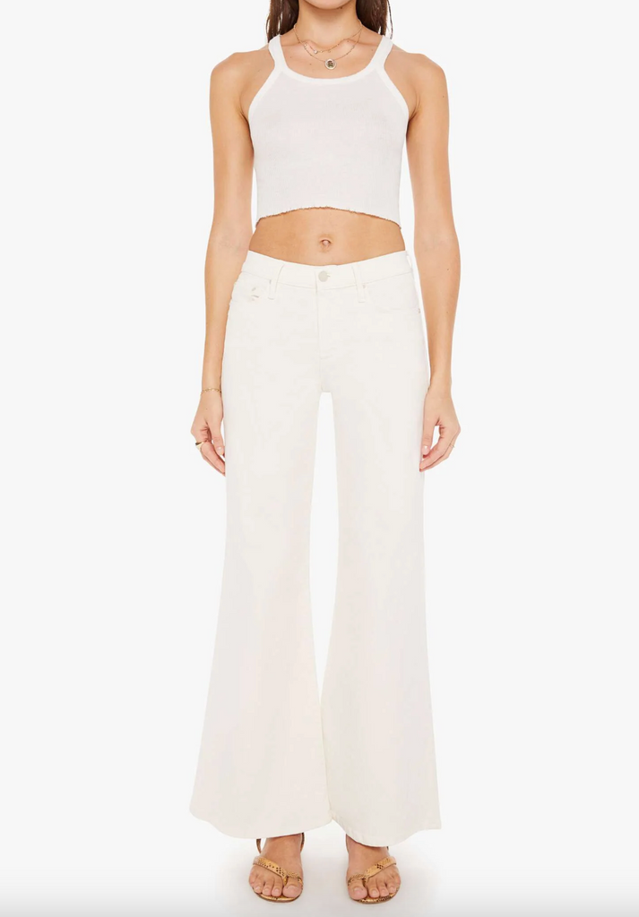 Puff piece. High-rise pants with a flared, wide leg and 31-inch inseam with a clean hem. Cut from comfortable stretch fabric, Cream Puffs is an off-white color with tonal hardware.