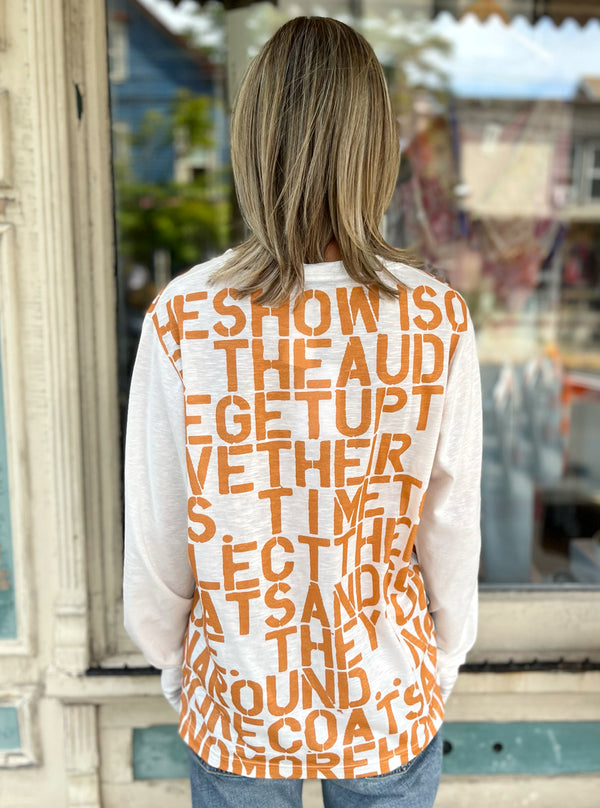 Boldly printed long-sleeve tees in organic linen blends bring artful flair to relaxed silhouettes, while oversized shawls double as statement accessories or wearable art. From “Rock Tickets” crewneck sweaters to “Money or Passion” cardigans, each design weaves narrative into fabric—fashion you can read at a glance. As for the maxi slip dress? Think fluid silk with graphic pop art dancing across the panel, perfect for when you want to make an entrance.