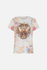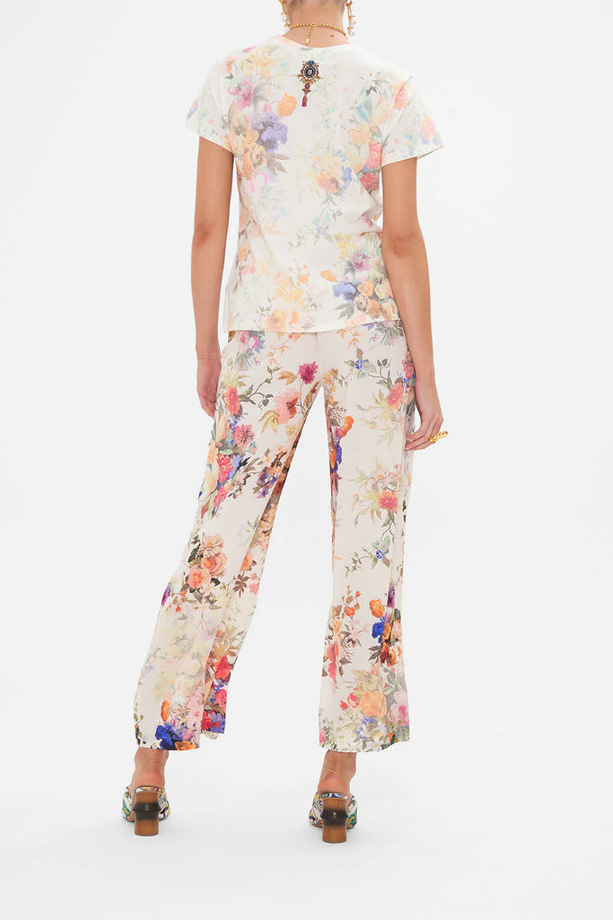 The Friends With Frescos Easy Tee captures the exquisite ambiance of the grand Hotel Villa Cora. Soft flowing curves guide us along opulent mosaics in a rich tapestry of pretty florals and baroque accents. Crafted from breathable cotton, this luxe trans-seasonal tee features custom all over print, shorter length sleeves, a timeless crew neckline that falls into a relaxed easy-fitting silhouette. Pair with the Friends with Frescos Minimal Wide Leg Pant for chic casual styling. Lovingly handcrafted, designed in Australia. Explore more from the Amore Mio collection.