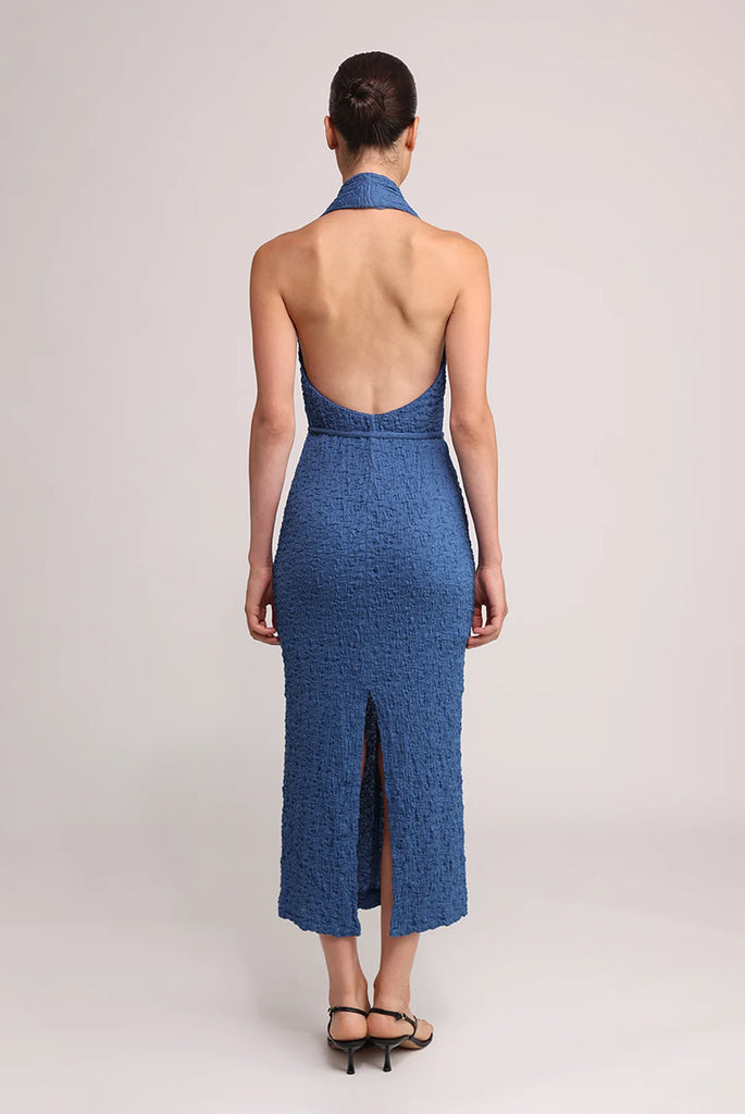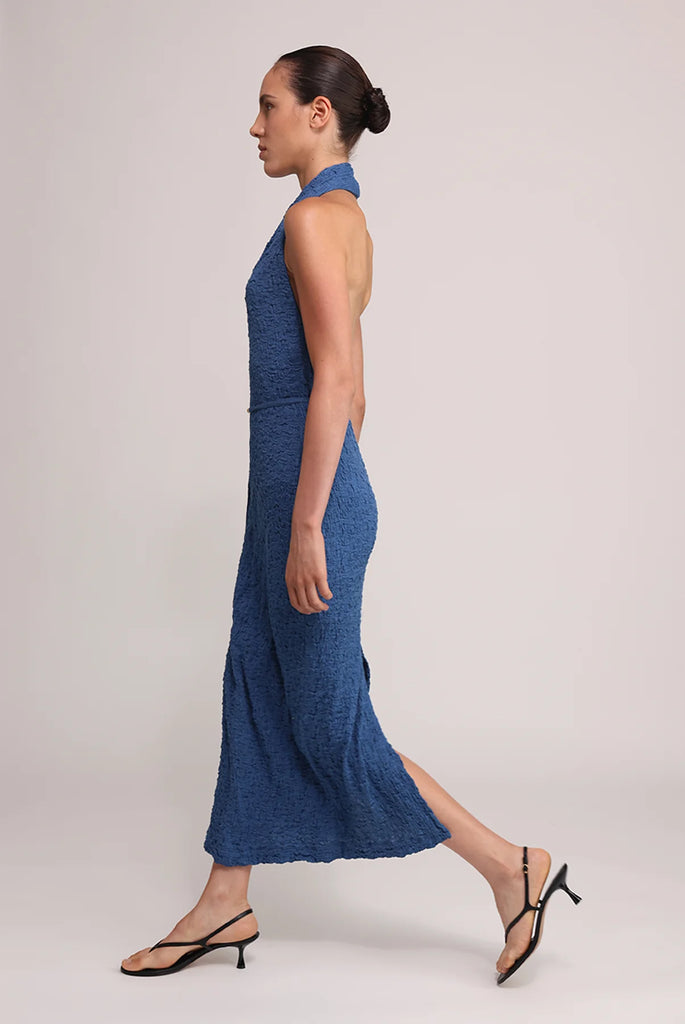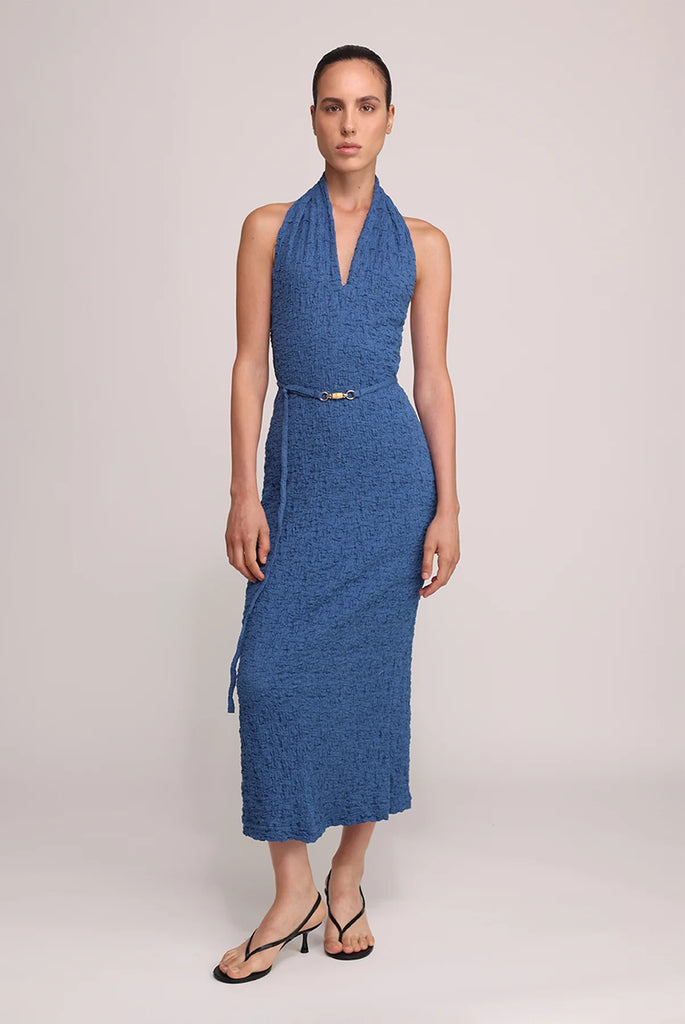 • Casual crinkled knit halter neck midi dress by Sabina Musayev.