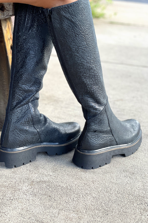 The Diane boot is a knee high, textured leather boot. The sturdy structured leather of this piece holds the form of the style.