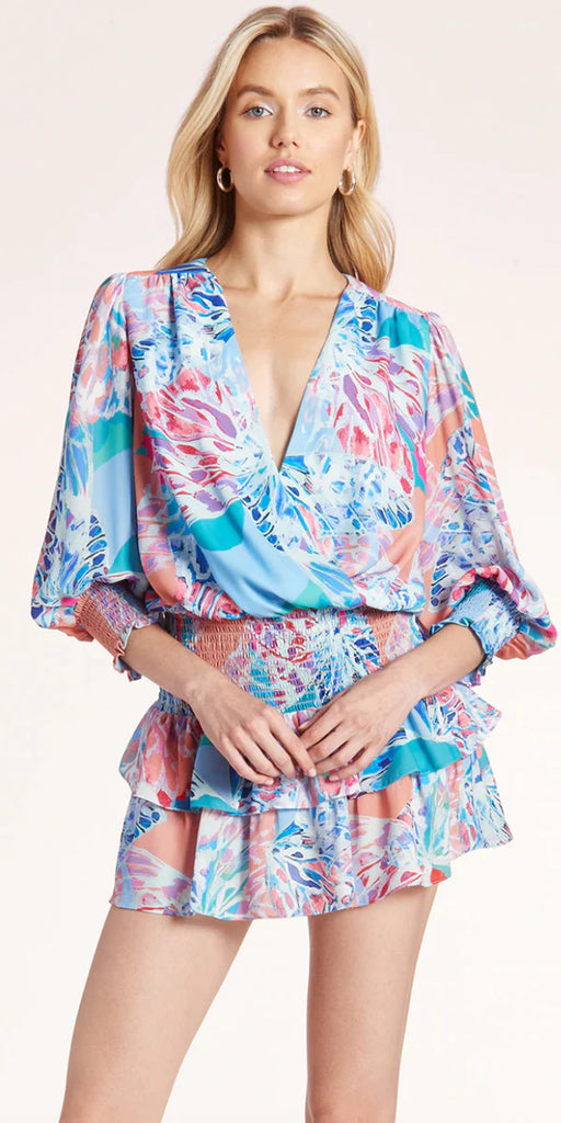 Bask in the Arber Dress all spring and summer long. Your favorite style, back in our gorgeous Papillon print. This Mini Dress features a crossover v-neck and smocking detail at the waist and cuff. You’ll be sure to turn heads in this go-everywhere mini.