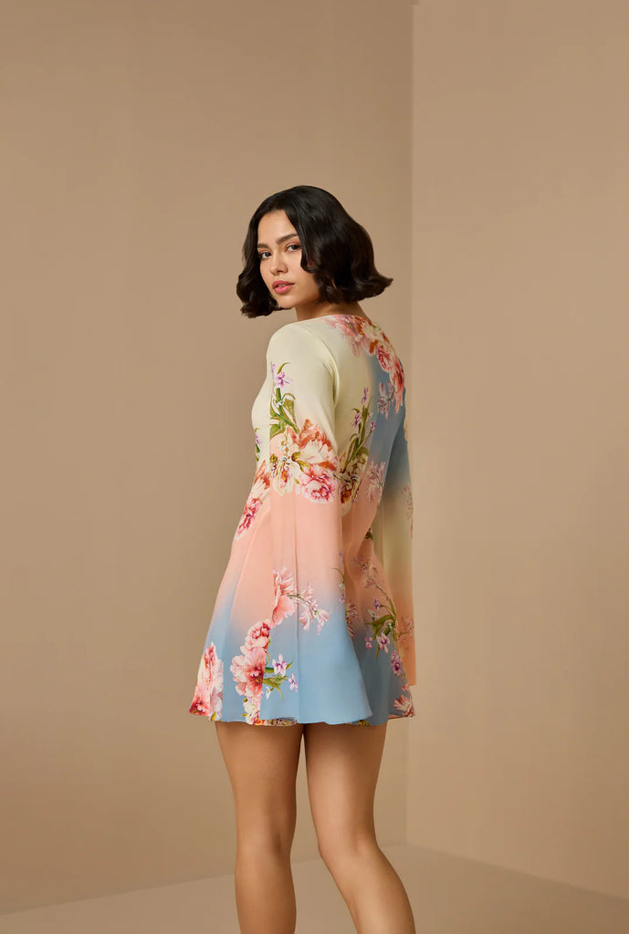 Kavi Long Sleeve Short Dress - Blue Ivory