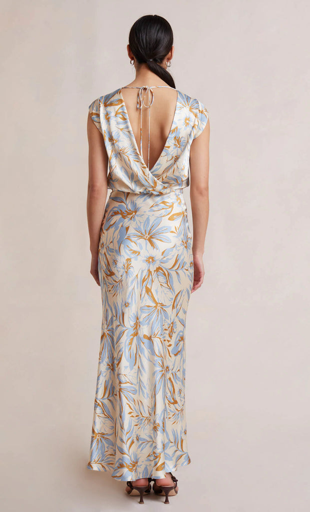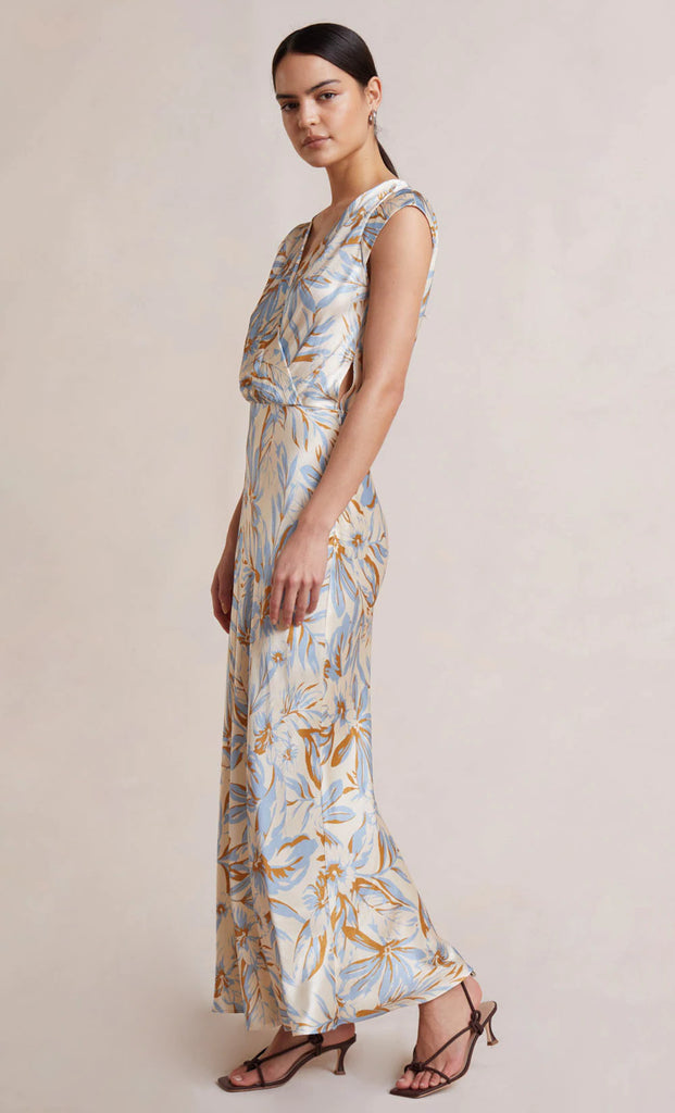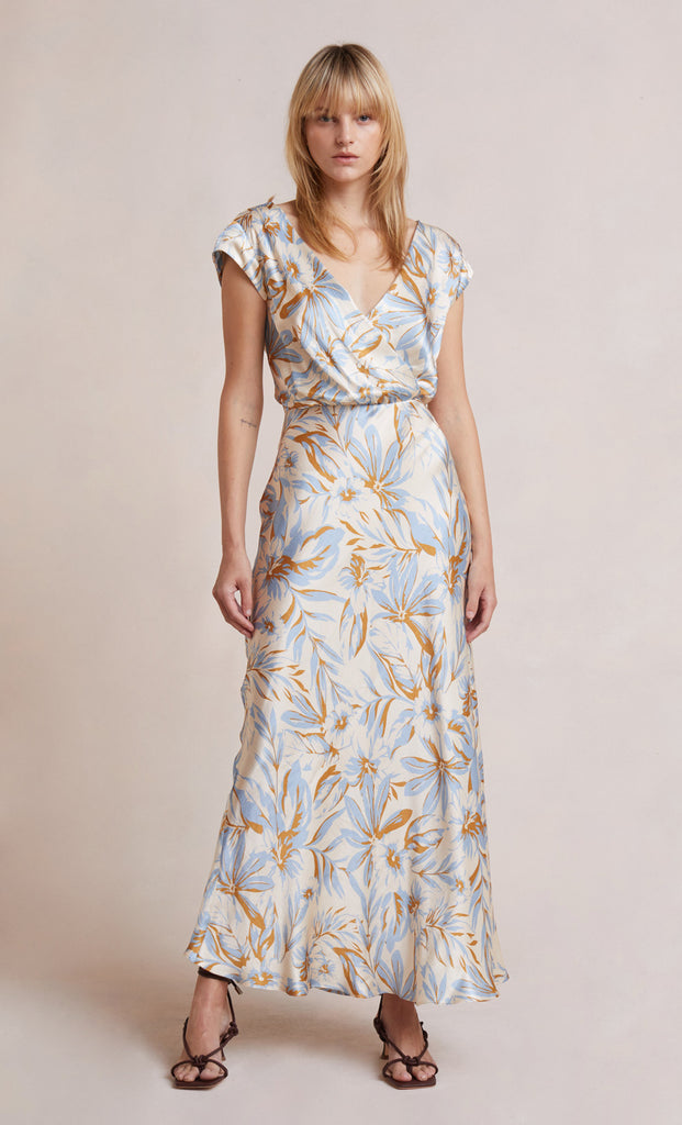 A flattering wrap-style maxi dress cut from a signature floral print silk fabric. Featuring a sculptural silhouette, the Stella Maxi Dress has a V-neckline and an elasticated waist with bias skirt that falls into a maxi length.