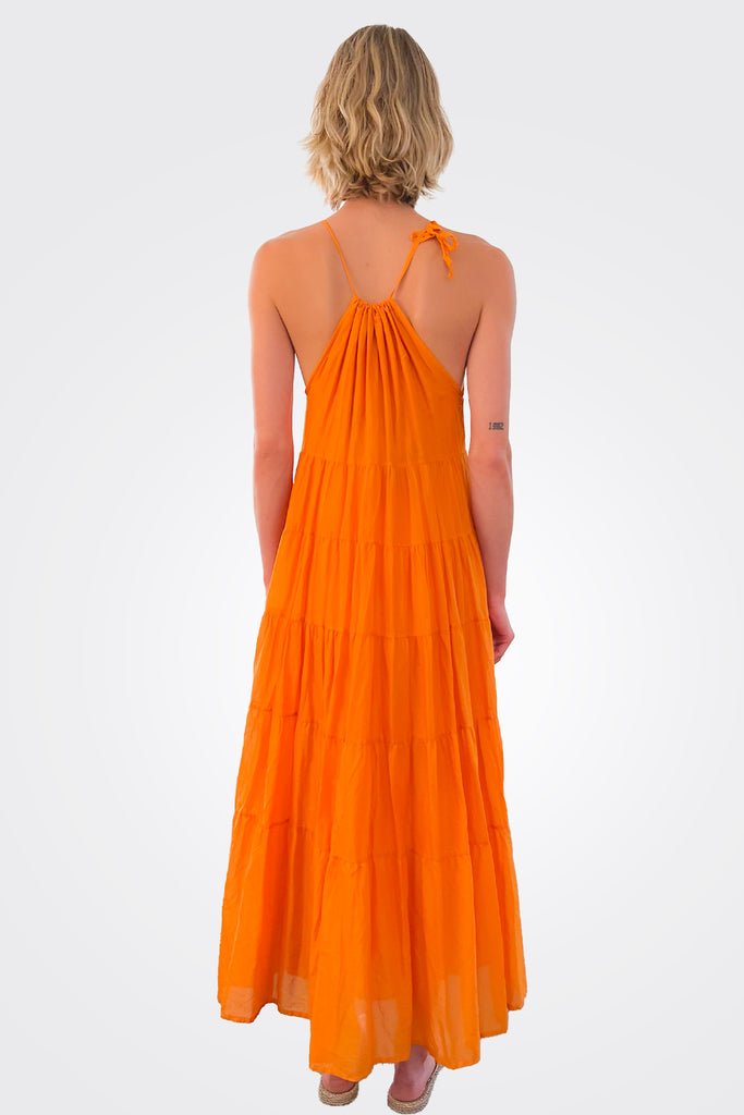 The flowy tiered maxi dress is an essential for the warm season. Adjustable straps make it comfortable and easy to fit any figure. The strap detailing elevates the classic silhouette. Transition this dress from casual to elegant by adding your favorite heels and statement earrings. A looser fit allows you to move freely on a warm day.