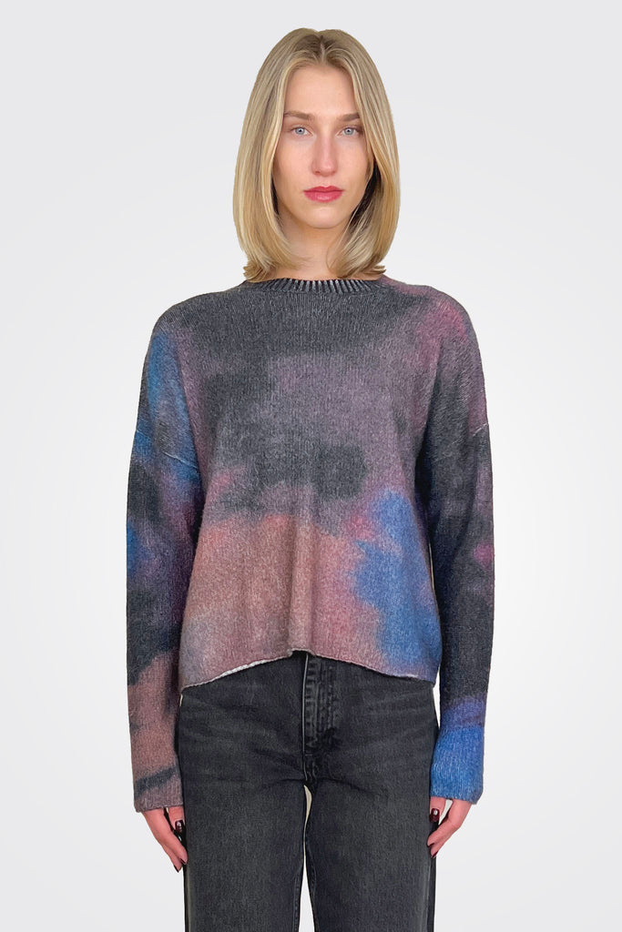 Fun yet elevated, our Blotch Print Boxy Raw Edge Crew can be dressed down with a pair of jeans or styled with a skirt and heels for a dressier look. Versatile and unique, this is a truly special and smart piece that can be worn from day to night.