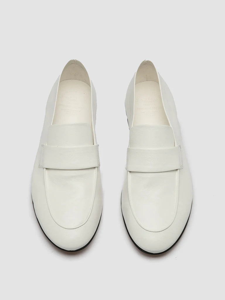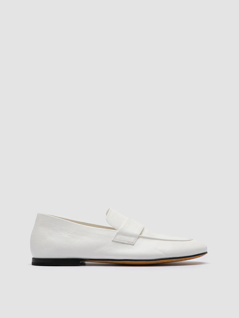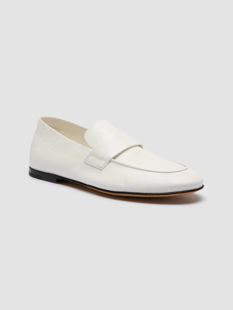 Ideal for a refined effortless style, our Blair loafers are handcrafted from supple white leather. They feature a rounded almond toe, front strap and a flat sole with a very low heel.