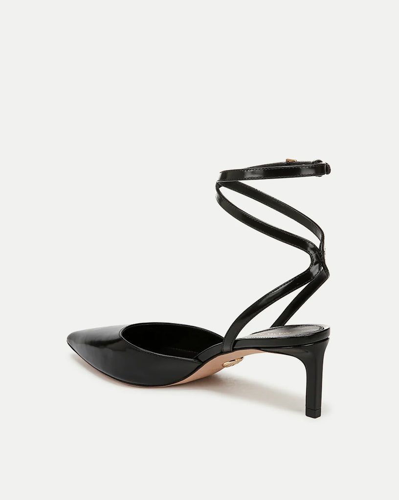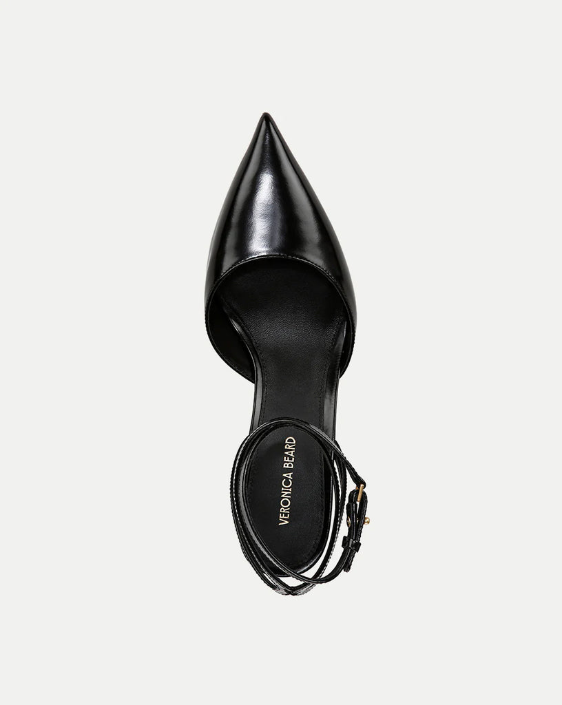 Classic black mule, VB twist. Marrying form with function, the leather Colette features a low heel, a cushioned footbed and elegant wrap-around ankle straps. Dress it up or down—this will take you from coffee to cocktails.