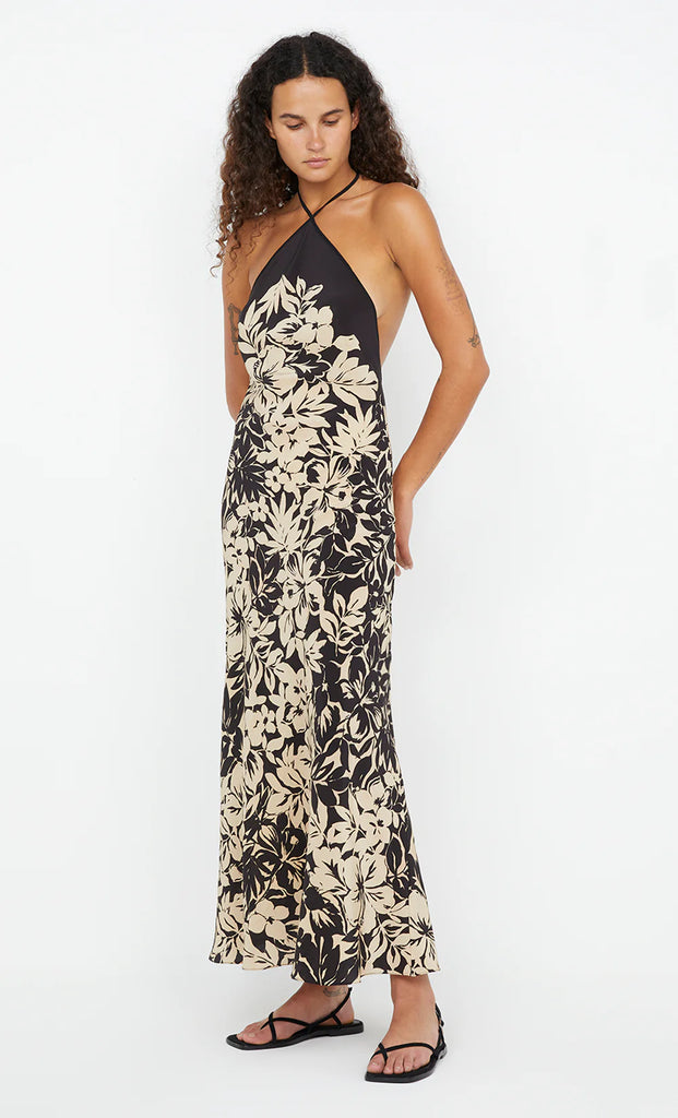 The BEC + BRIDGE Astala Midi Dress in Ilia Floral is a timeless and elegant piece crafted from placement-printed Silk Crepe De Chine. Featuring a halter neckline that ties at the back and a low back design, this bias-cut midi dress is designed to skim the silhouette for a flattering fit. Finished with a narrow turned-up hem, it’s perfect for weddings, cocktail events, or summer soirées.
