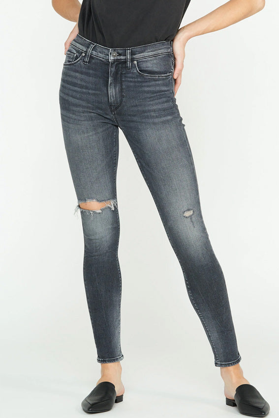 Our Barbara High-Rise Super Skinny Jean in washed black Out of Sight features a slim, contoured fit, an elevated waistline, and a clean finished hem. Cut from premium comfort stretch denim that offers an authentic feel with a hint of stretch for added softness, comfort, and flexibility. Finished with heavy fading and destruction. Runs true to size.