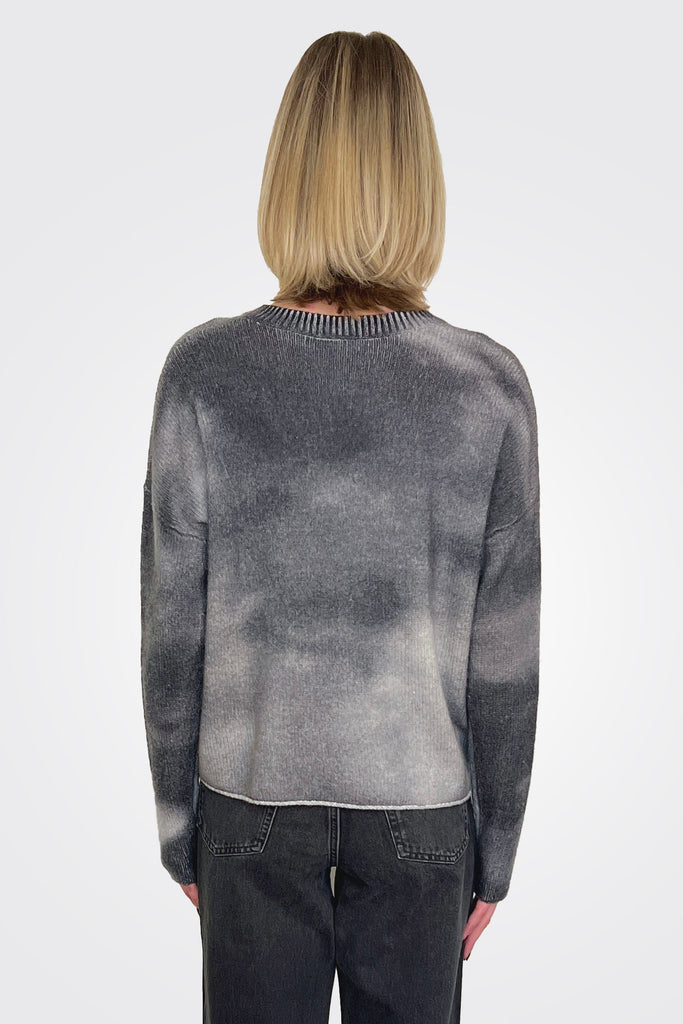 Blotch Print Boxy Raw Edge Crew - Pepper Multi