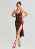 Classic yet sexy, the Emma Dress is a wardrobe must-have. Cut in smooth silk, the design features crossover straps, a low back, and a seductive thigh-high slit. The style is finished with an asymmetric hem and a hidden side zip closure. Shown here in Natural.