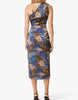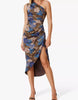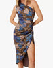 Make a statement in the Erin Cocktail Dress. With a flattering one shoulder design and ruching, this mid-length dress will make you feel confident and stylish. The high slit adds a touch of sexy. Pair with matching heels for a stunning look.