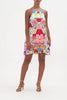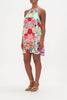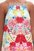 The Go Stag High Neck Low Back Shift Dress complements the skin with soft blue hues detailed with botanicals blooming in shades of crimson, dandelion and blush. Adorning hand-embellished CAMILLA crystals, this luxury silk dress is finished with an exquisite high neck, a relaxed shift-style silhouette, low back details and cropped hem that dances into a flare.