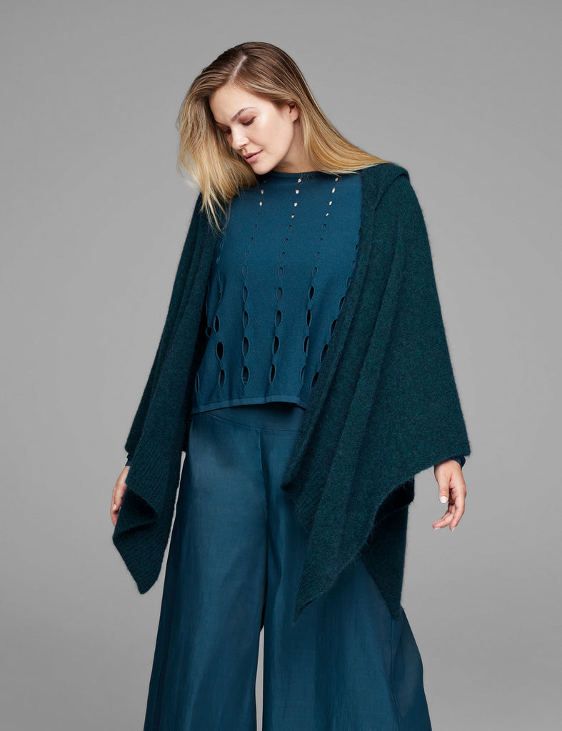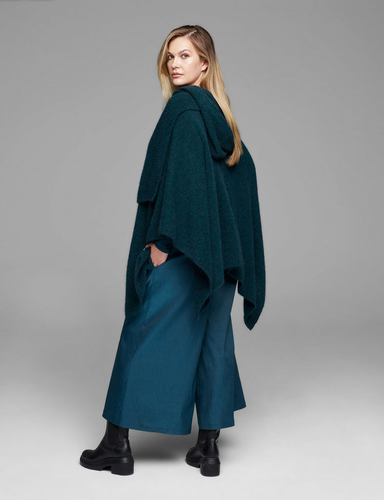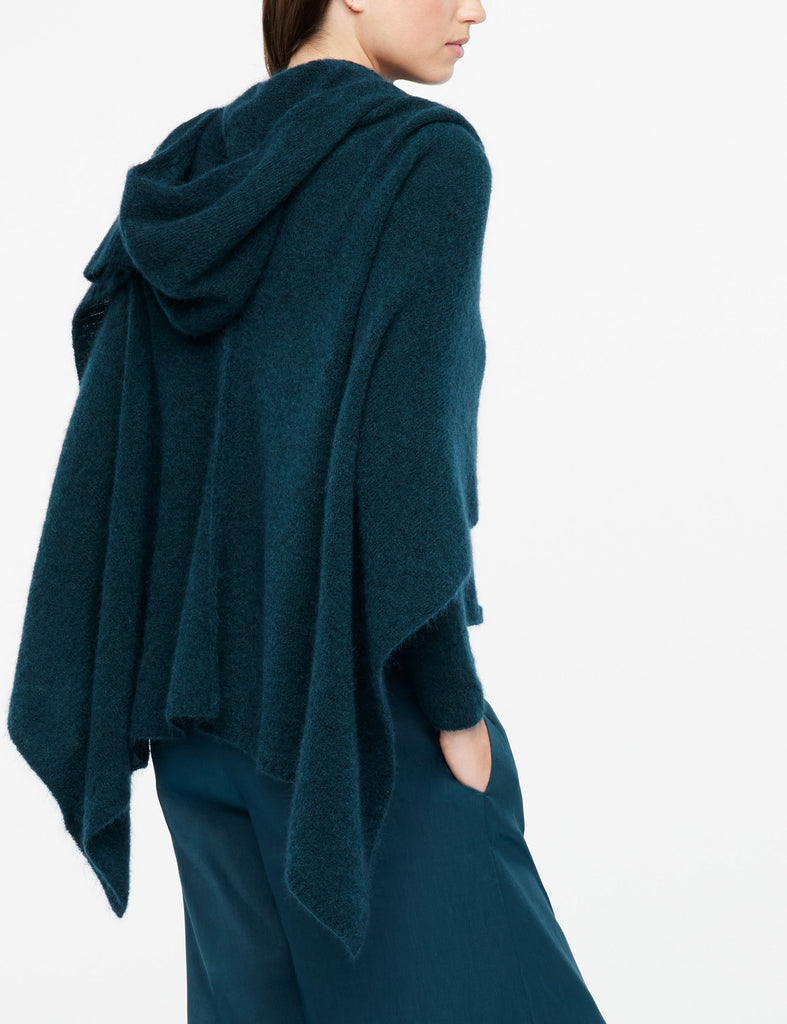 A safety pin lets you style this poncho many ways. The ultra-soft design in wool features an oversized hood and pockets to keep you cozy.