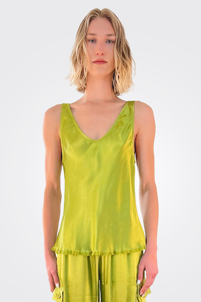 A modern take on Dawn Cami, the Jennie Tank can be dressed up or down, worn alone or layered, from day to night. Made from our signature satin fabric, this top is lightweight with a glistening sheen.