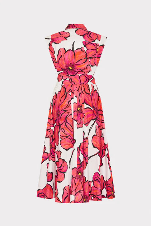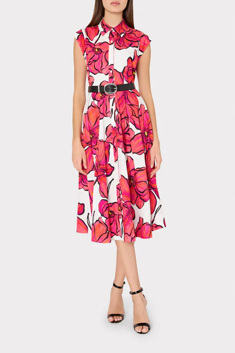 Introducing a brand new dress style for Spring—meet the Jules dress. Cut from printed cotton poplin, this cap sleeved, midi length dress has a button-front closure. It flares out at the waist and is finished for a self-tie for added definition. It’s now being offered in our new Windflower print—a coral colored floral print that feels retro and modern at once.