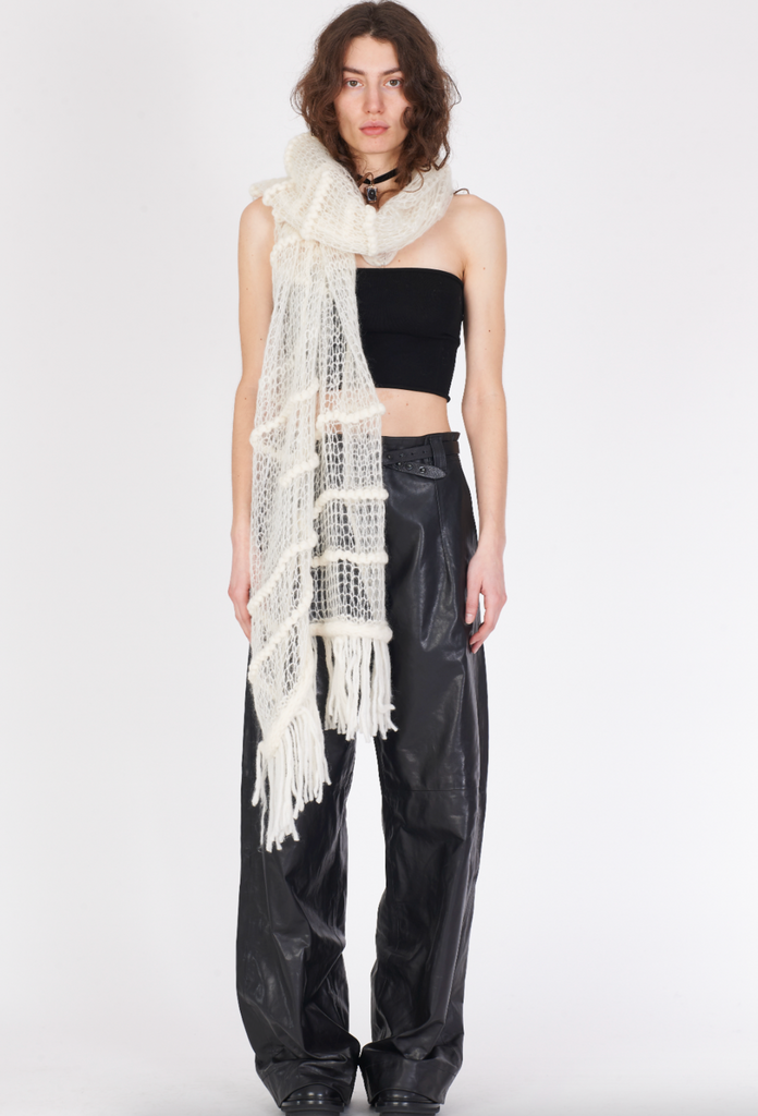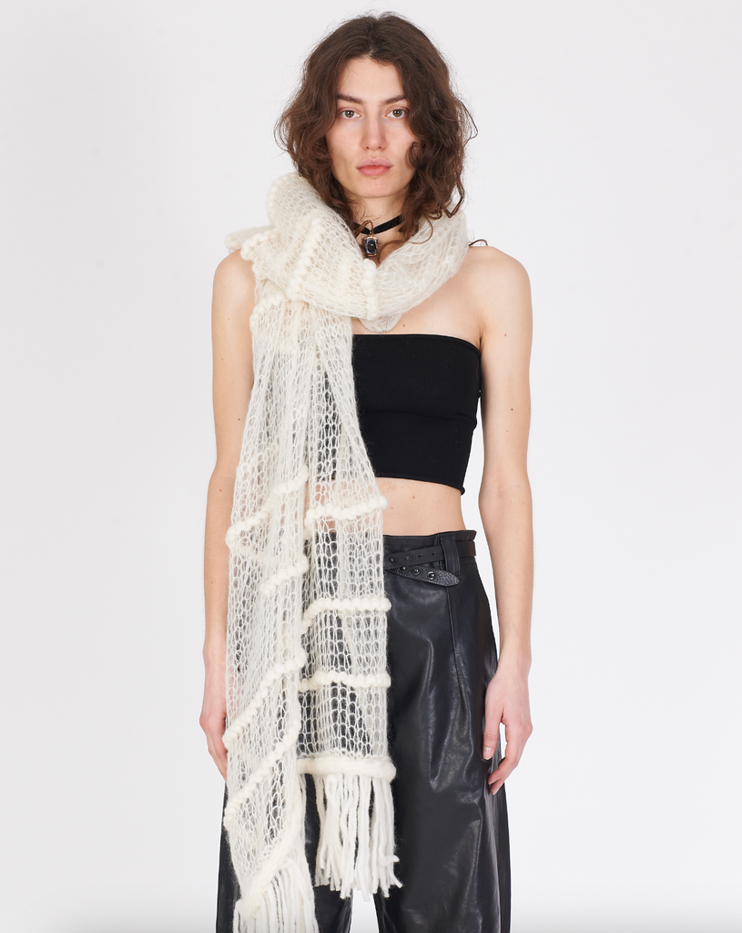 Knit Fringe Ends Scarf - White
