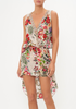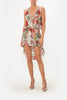 A feminine high low mini dress, the Leos Bouquet Cross Over Dress with Long Back is adorned with exotic patterns on this silk canvas. This ethereal printed sleeveless silk dress features an embellished crossover front with press stud closure, elasticated waist and softly draped hemline that moves with a gentle grace.
