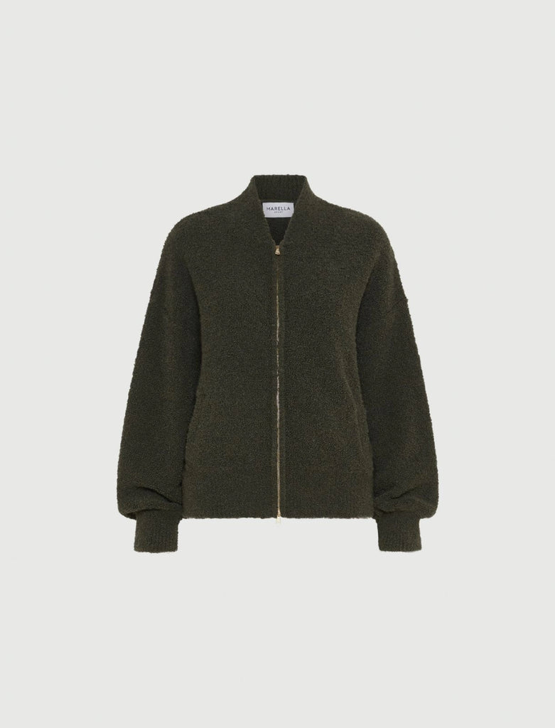 The focal point of new urban fits: the bomber jacket is taking up new space in the wardrobe. This soft wool bouclé version adds comfort and softness to the naturally enveloping fit.