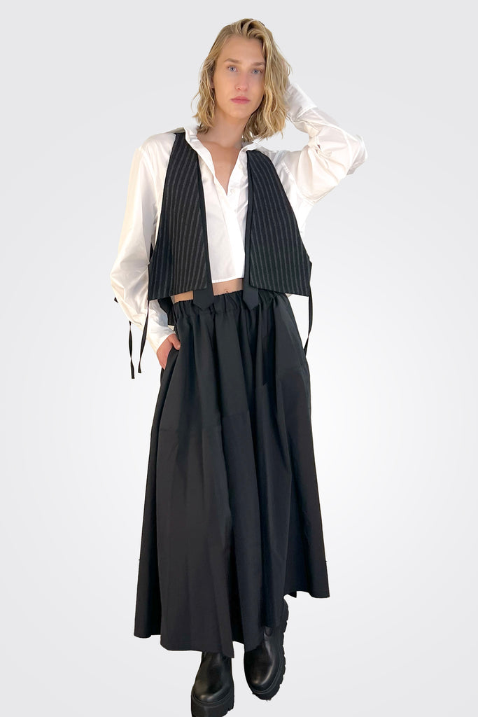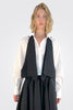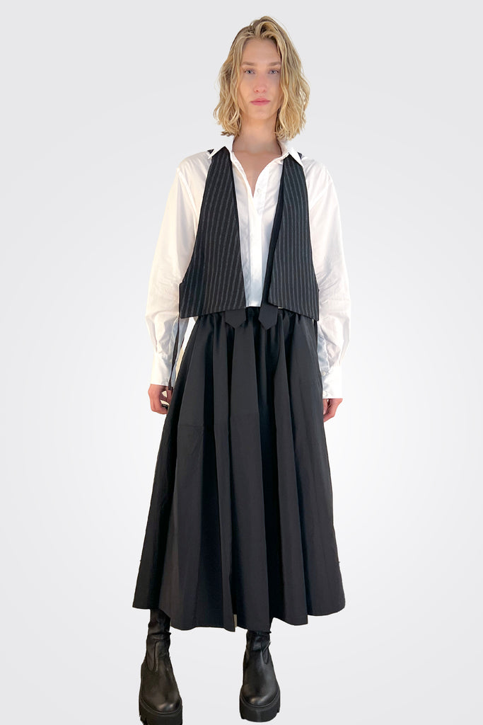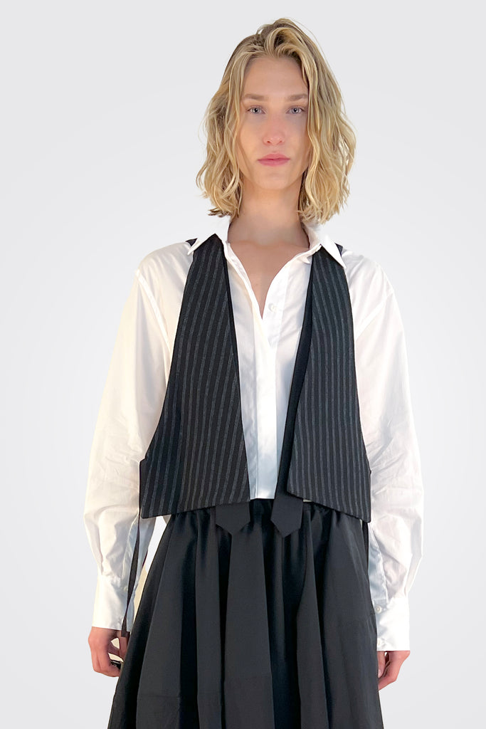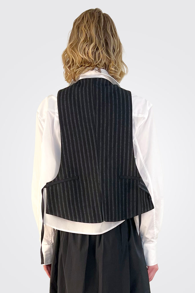 Tailored waistcoat in wool-cotton with pinstripe design, inspired by the men's wardrobe, with tone on tone wool inserts.