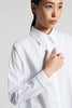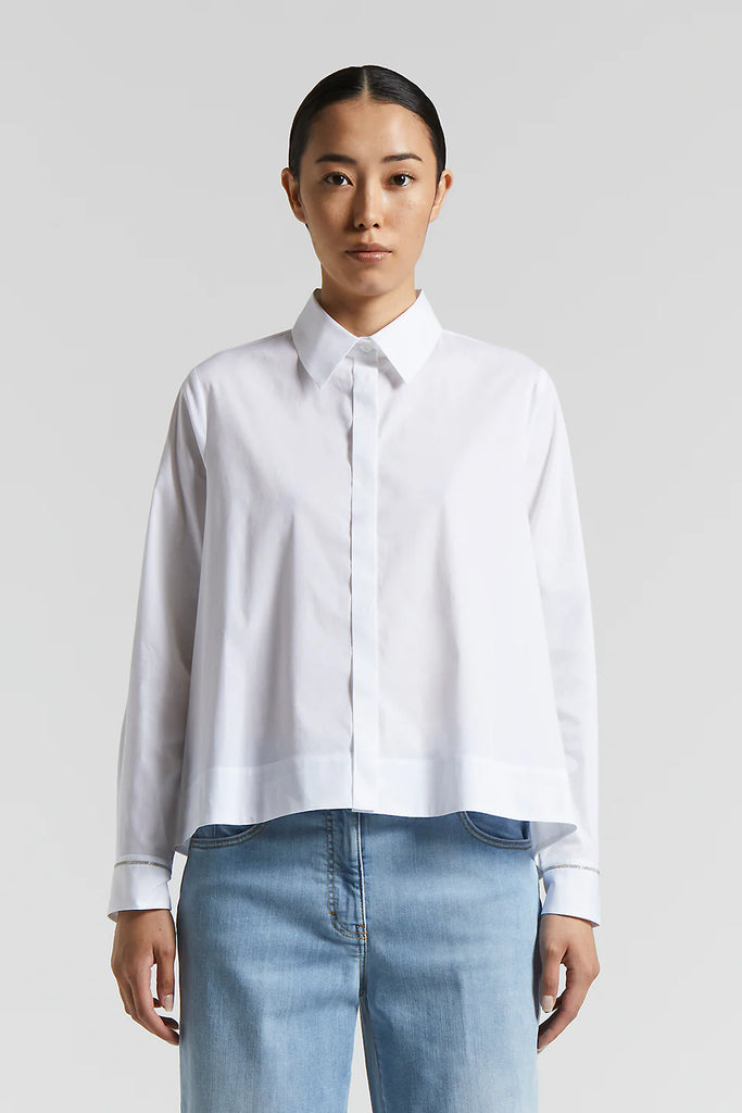 Made of a refined blend of stretch poplin and cotton voile, this shirt combines style and comfort in a feminine and versatile design.