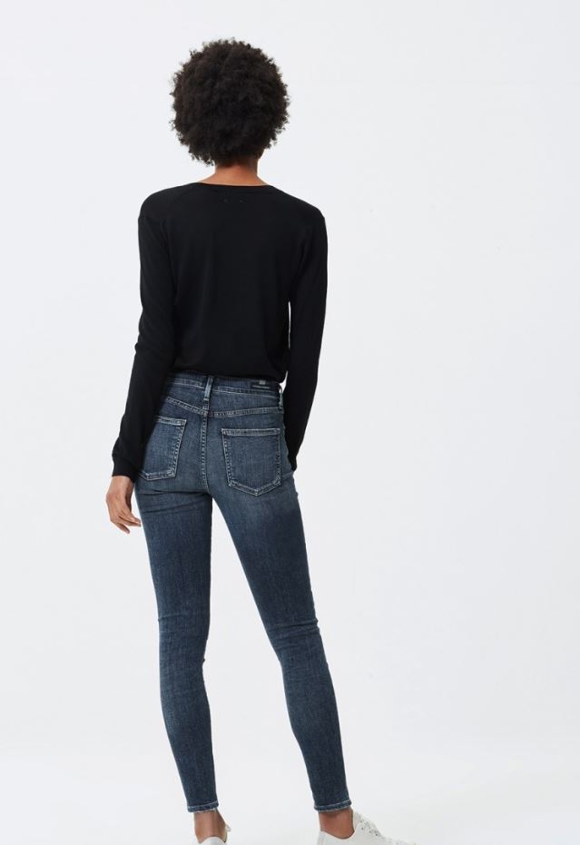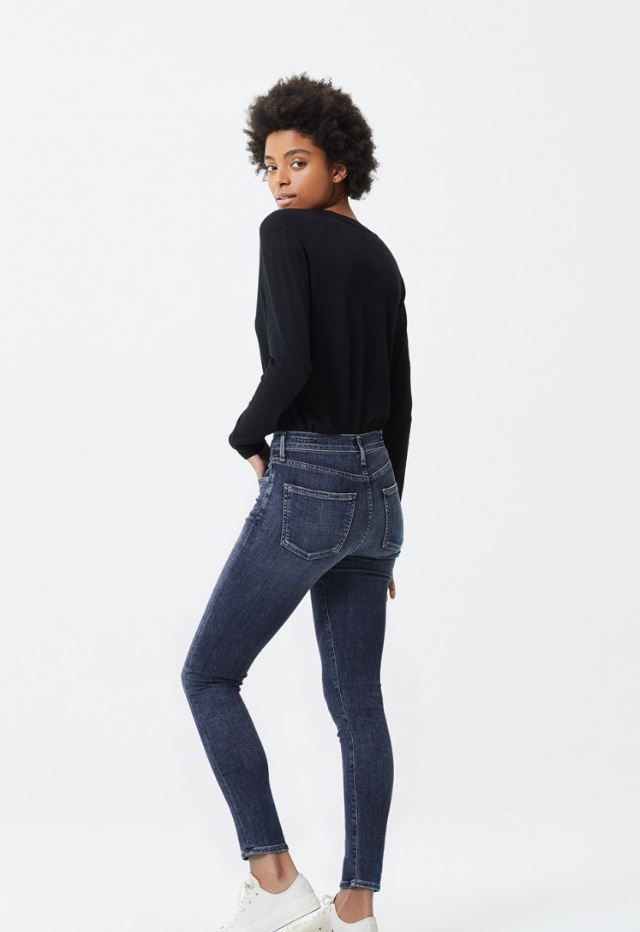 Cut from stretch denim, our bestselling skinny features a clean and classic high-rise. The Rival wash is a dark indigo with light whiskering.