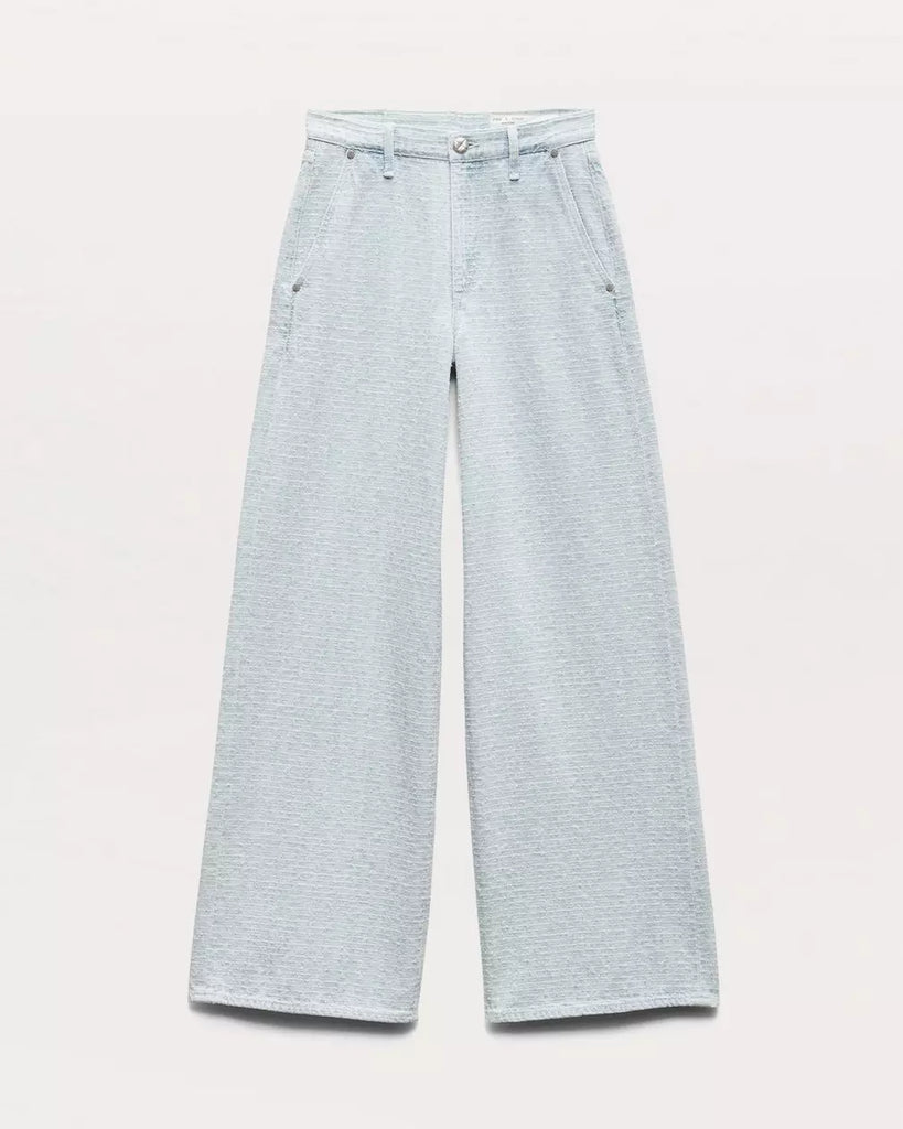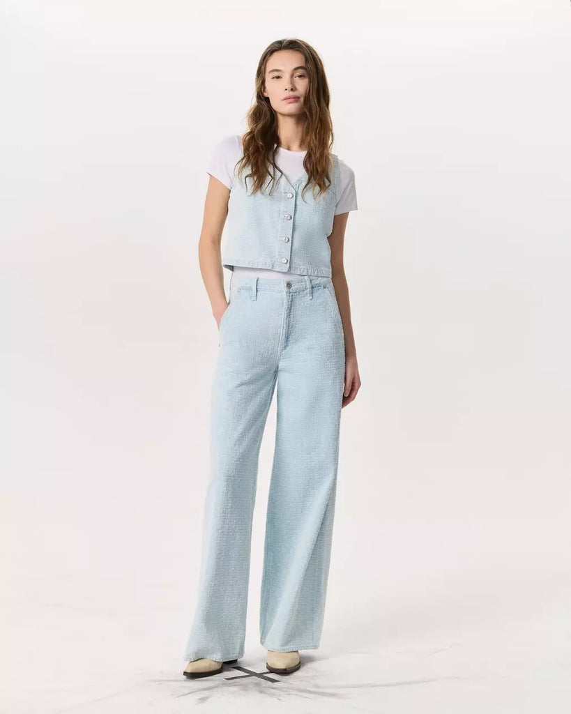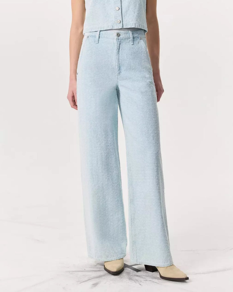 Sofie Tailored Textured Wide-Leg Jean - Sky Blue Tweed