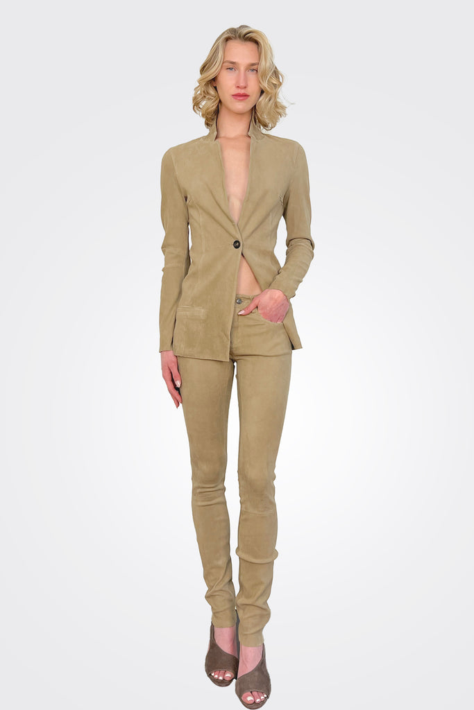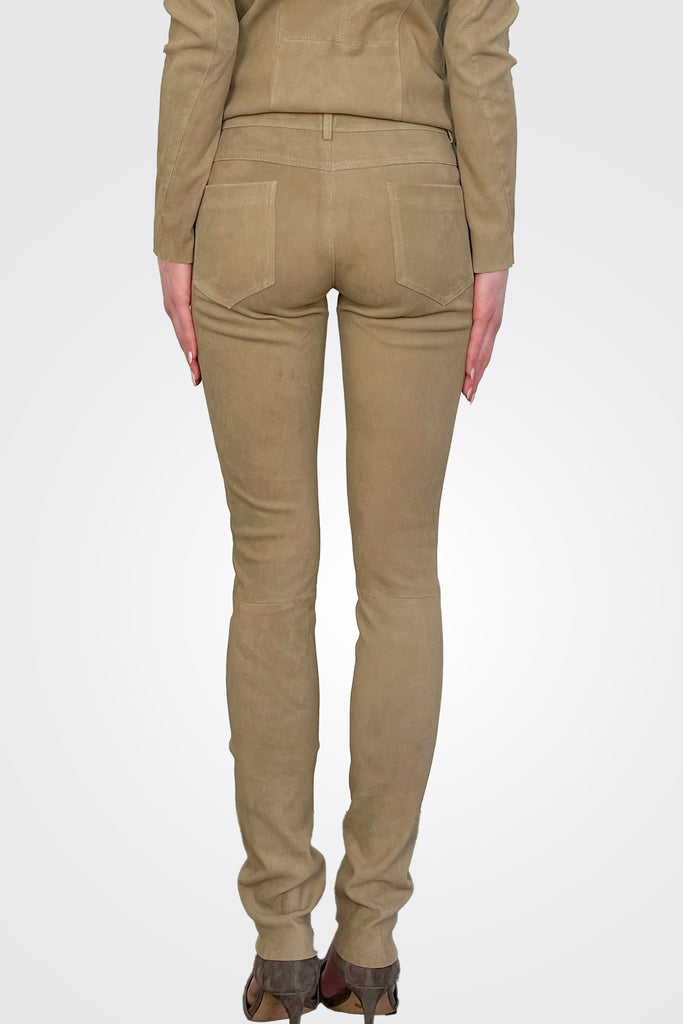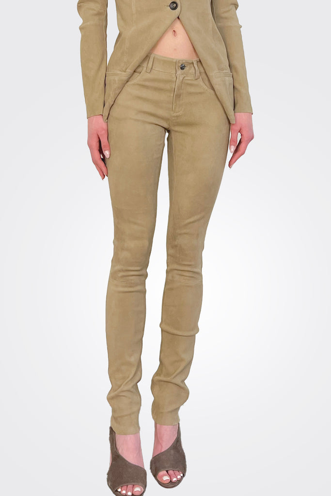 Suede Stretch Leather Pants - Taupe