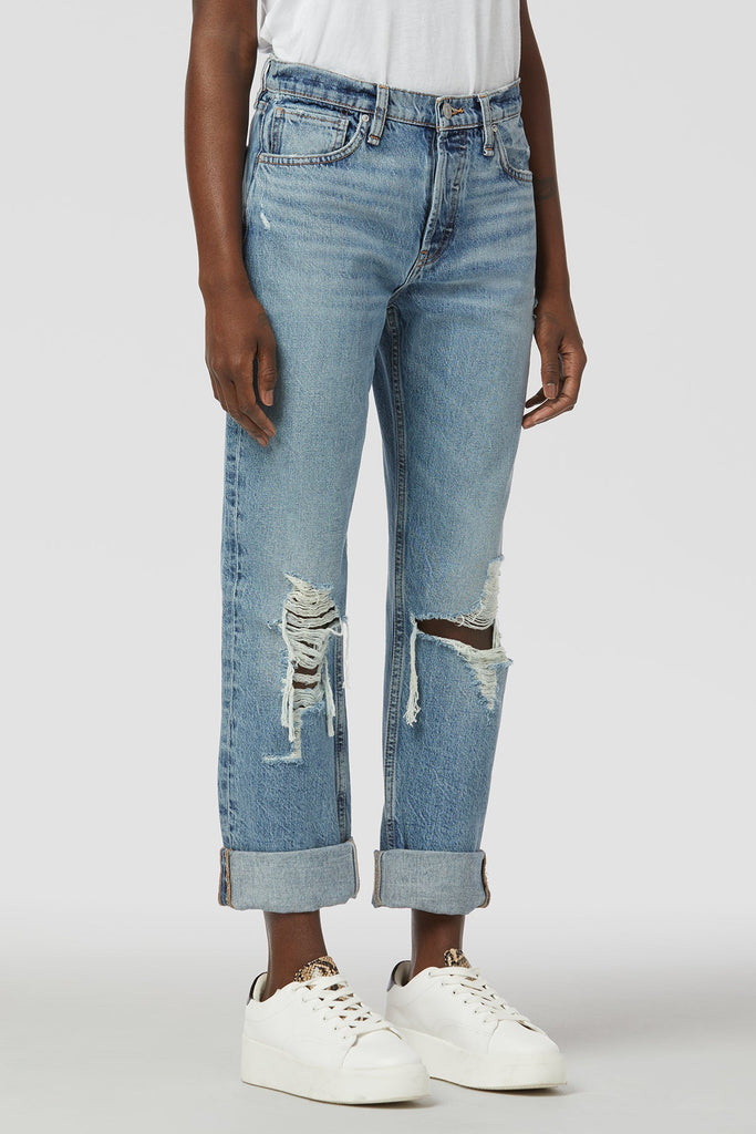 Ease up. Thalia Loose Fit Jean with rolled cuff is a relaxed cut straight out of the ’90s, designed to be worn with a slight slouch. Expertly destructed, the medium indigo Feel Alive wash is made from 100% cotton rigid denim for a structured feel that’ll only get better with time.