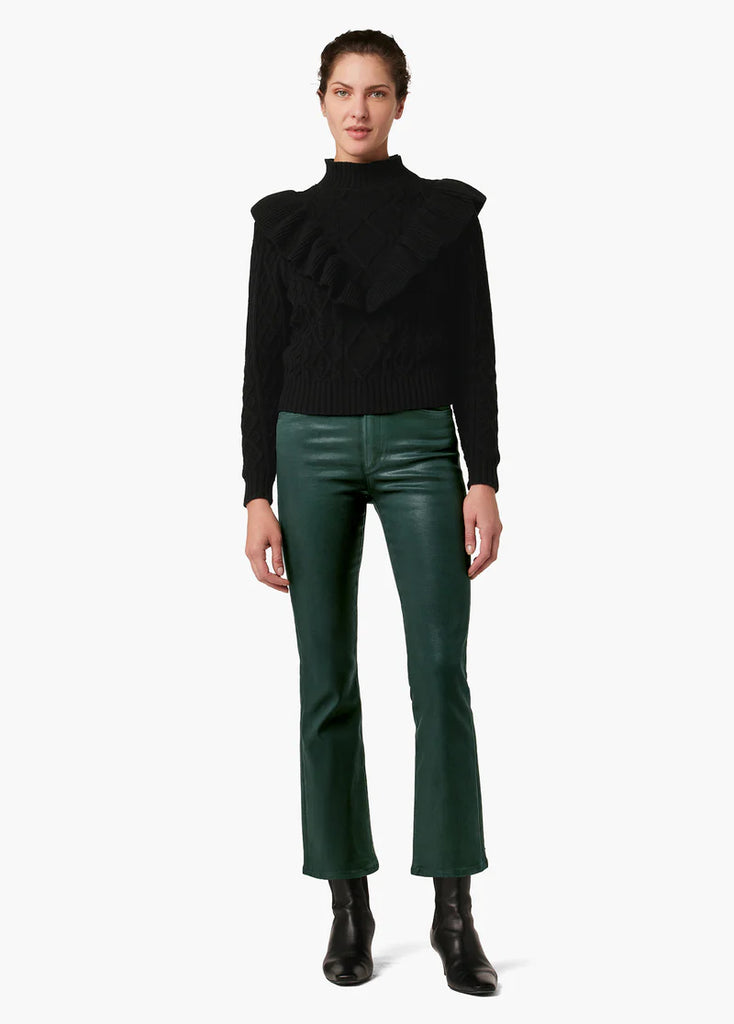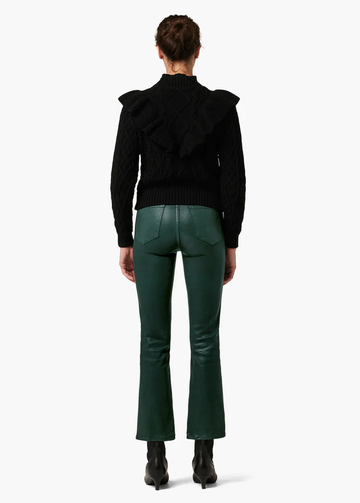 The Callie Coated is a high-rise cropped bootcut jean that has a super amount of comfortable stretch. The denim has been dyed to a lush army green. Finished with a wax coat for subtle sheen, these pants are a timeless option that can be styled for casual and formal occasions.