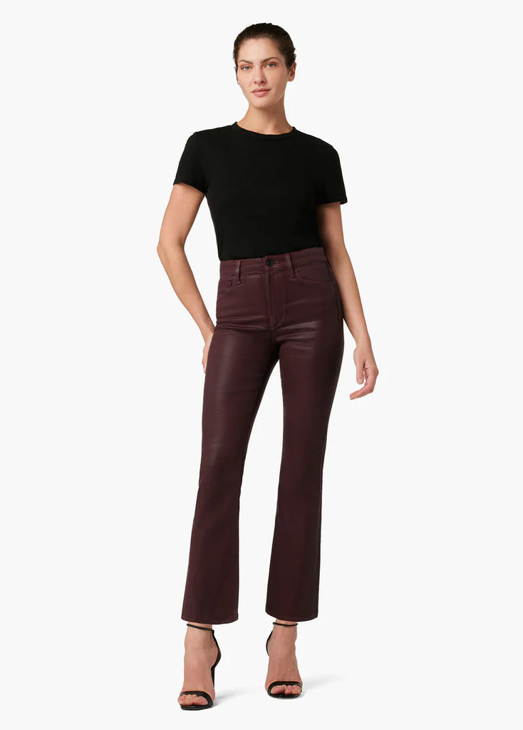 The Callie Coated is a high-rise cropped bootcut jean that has a super amount of comfortable stretch. The denim has been dyed to a lush army green. Finished with a wax coat for subtle sheen, these pants are a timeless option that can be styled for casual and formal occasions.