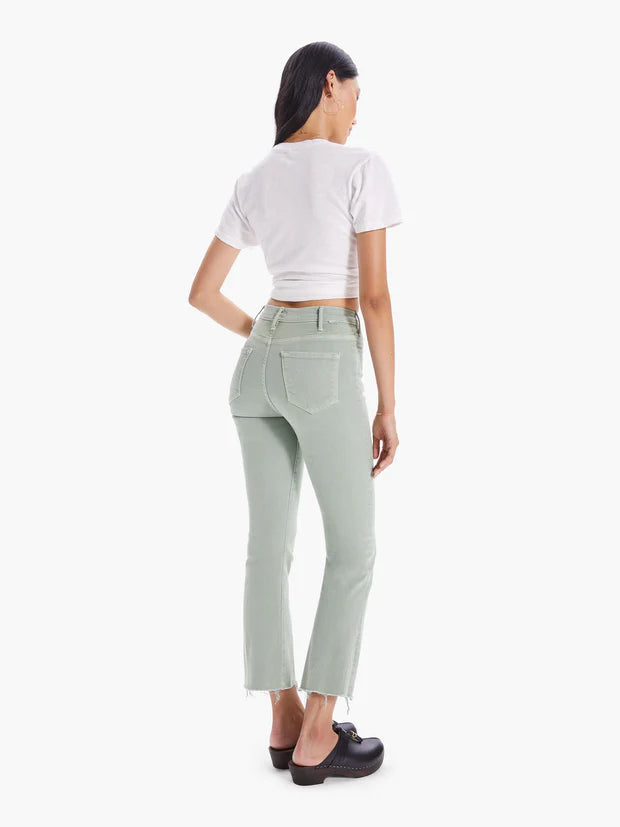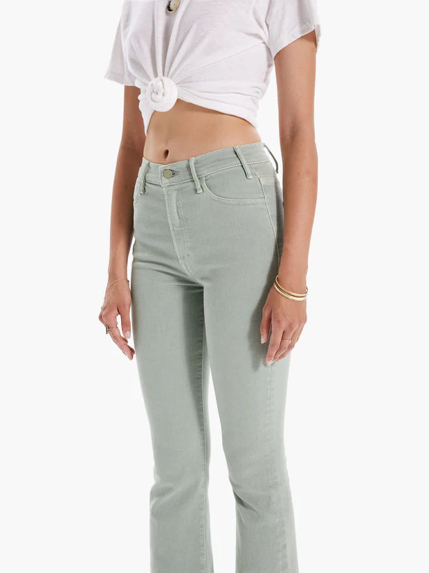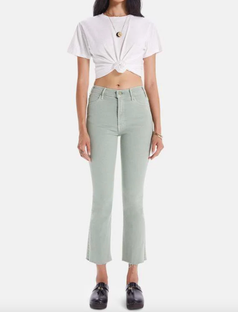 Lettuce know. These bestselling high-waist flare jeans have an ankle-length inseam and a raw hem. Made from stretch fabric, Iceberg Green is a soft green-grey hue.