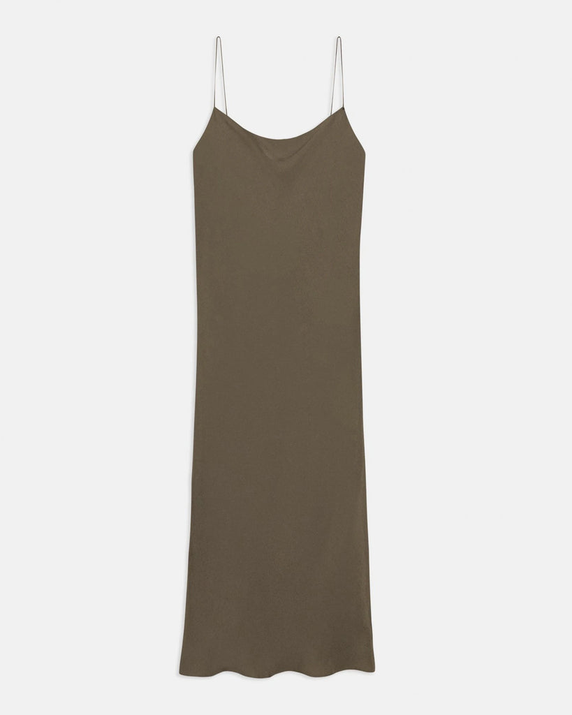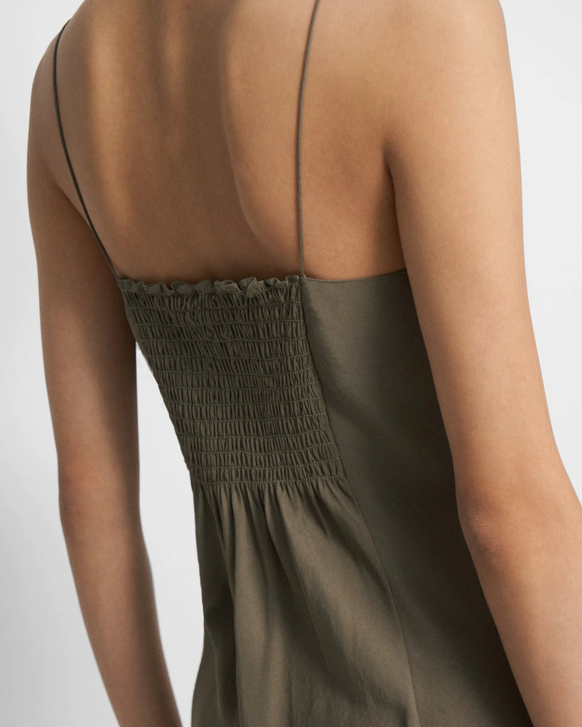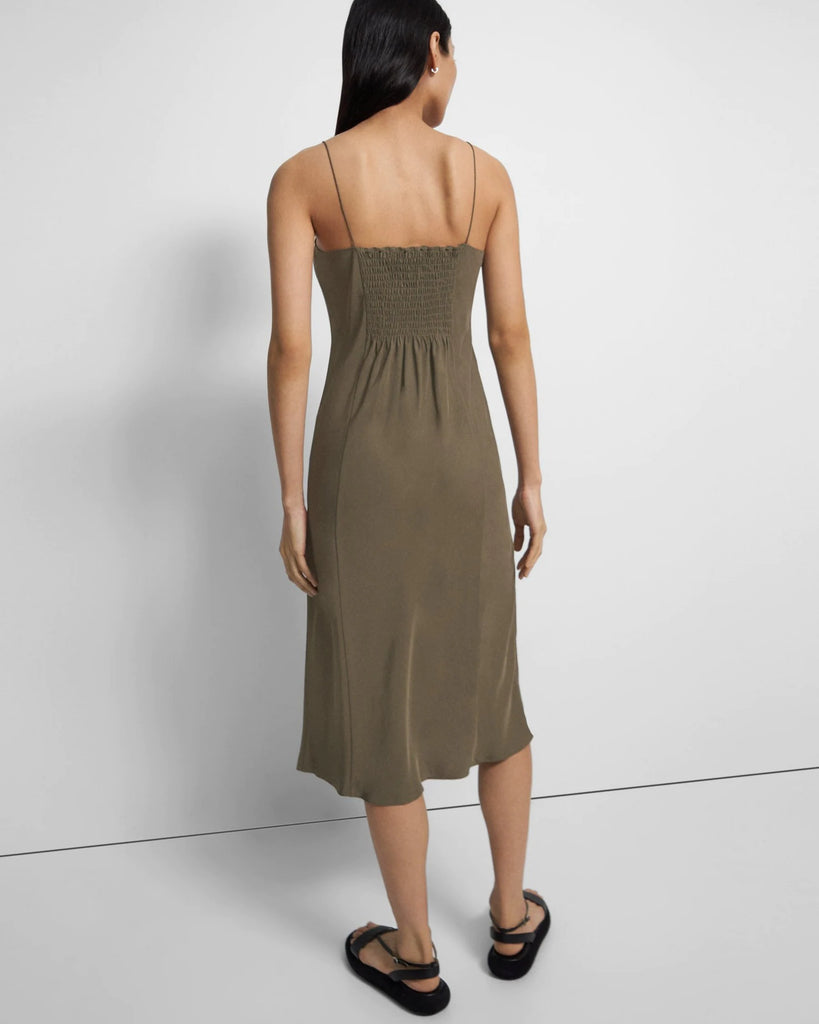 The back of this modern slip dress is lightly smocked for a more flattering fit. This elevated style is meticulously crafted from crafted in our Japanese twill that features a washed look and smooth drape.