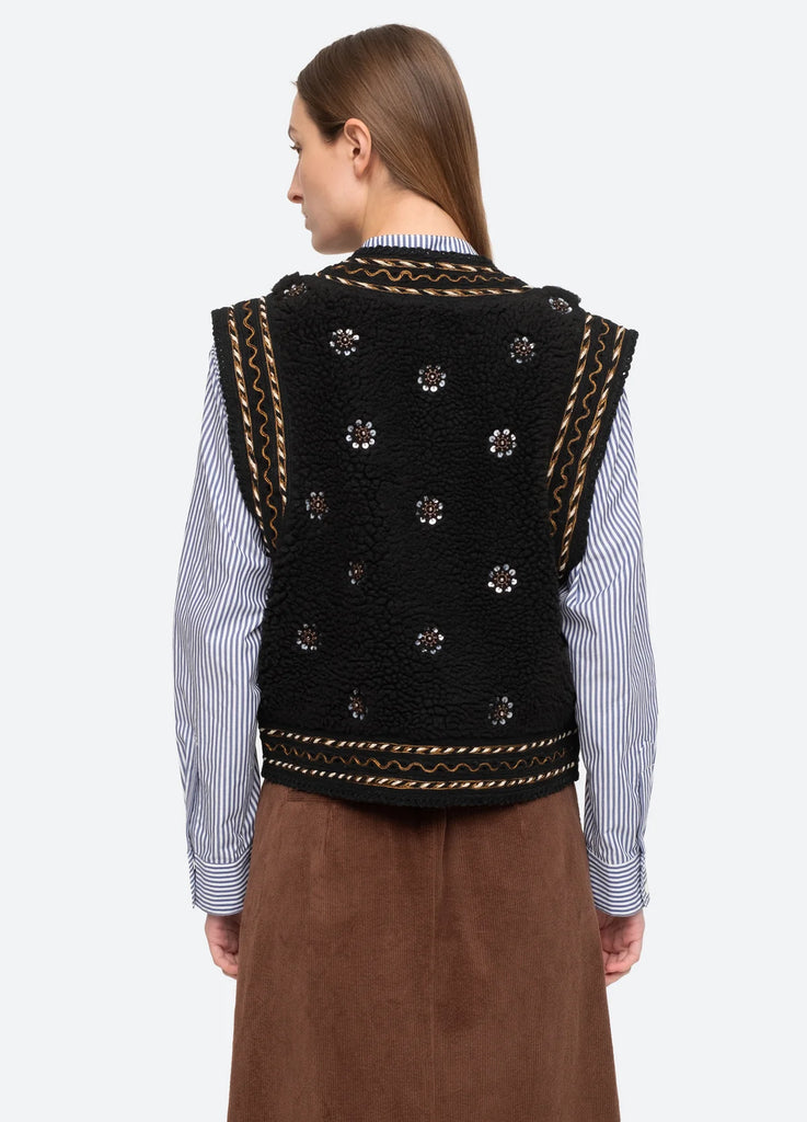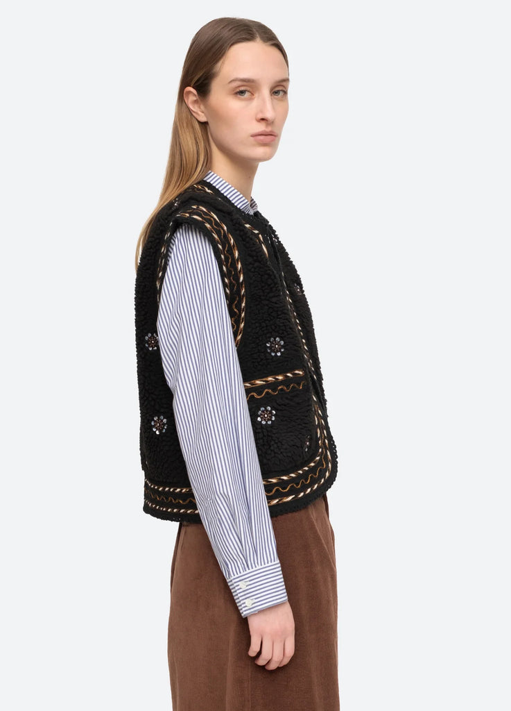 The Maja embroidered fleece vest features 3 dimensional embroidery and trim detailing.