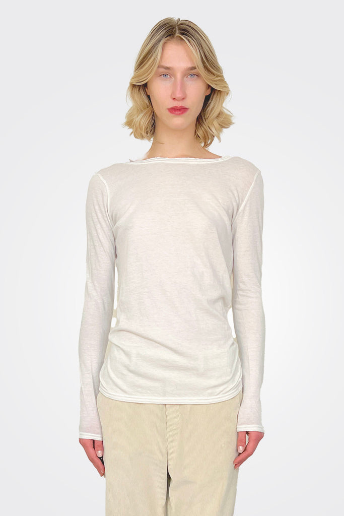 This Cotton-Wool blend Jersey is a wardrobe essential, with its incredible softness and effortless versatility. The minimalist design allows it to pair seamlessly with any outfit and makes it perfect for layering throughout the year. The ribbed neckline and hems add a touch of refinement, enhancing both its look and feel.