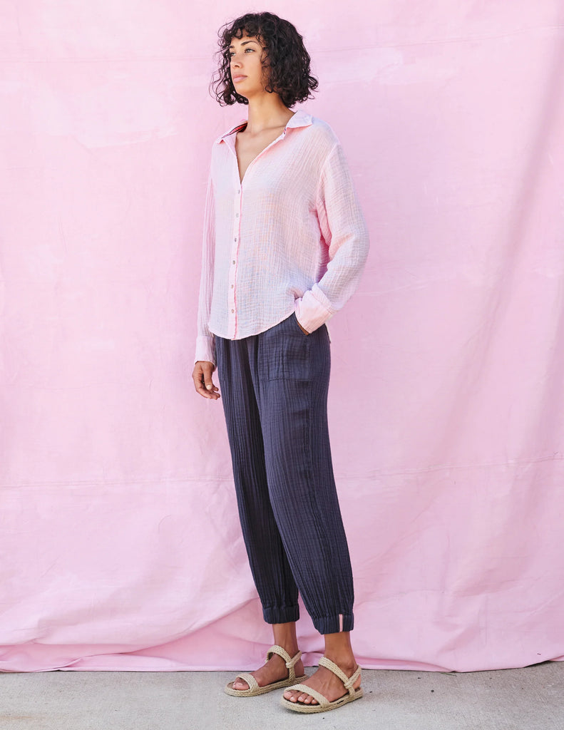 This effortlessly chic top embraces the tailoring of a classic button down and none of the rigidity. For relaxed workwear, a tapered trouser or cropped jean is the perfect companion for this piece.
