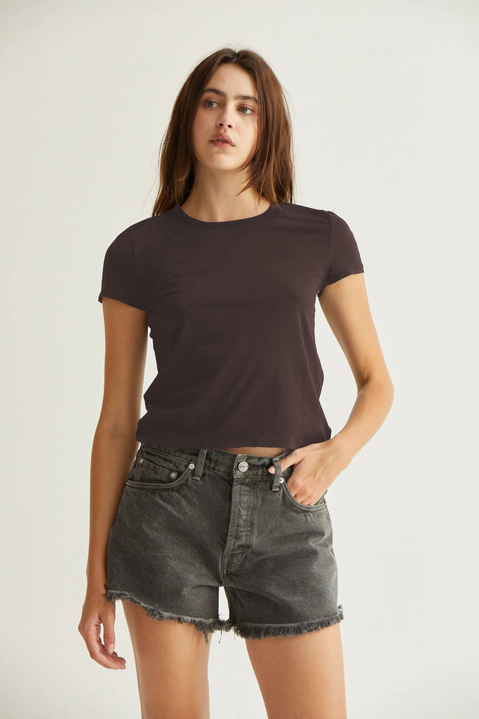 The Noe features an intentionally shrunken baby fit. Our high twist feather weight Japanese cotton jersey creates a lightweight yet durable "pill-resistant surface" that stays looking fresh wash after wash.