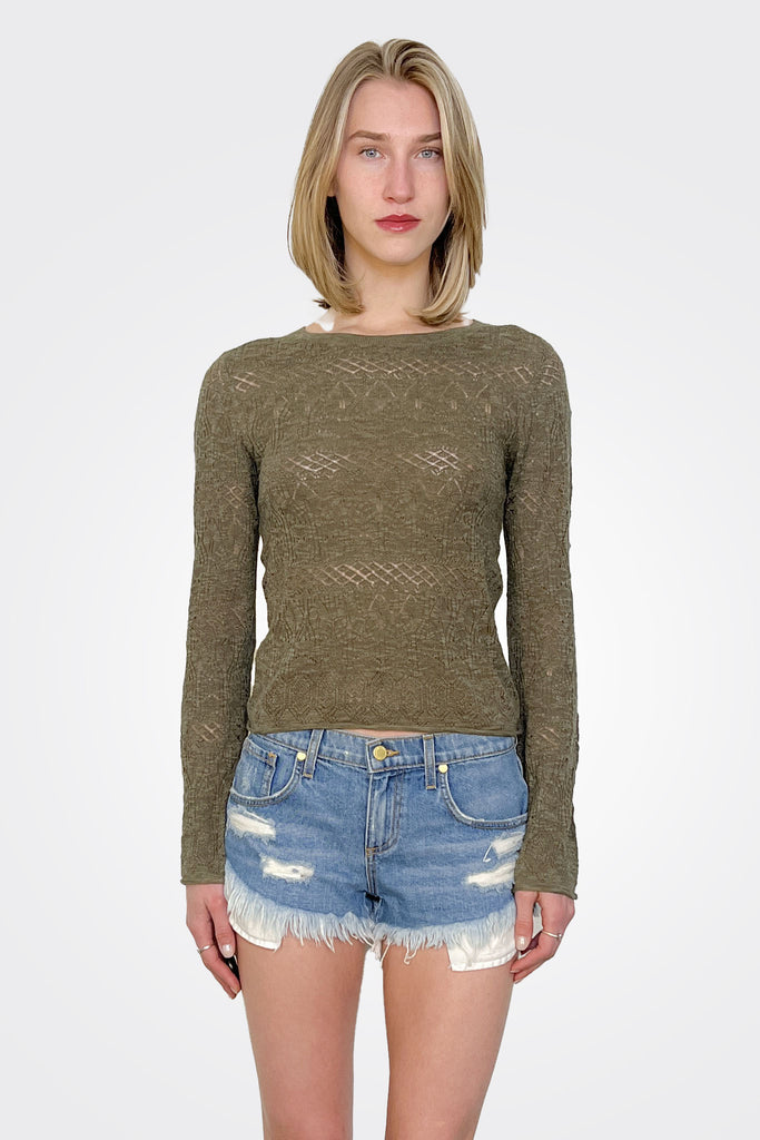 Pointelle Long Sleeve Top - Pesto
