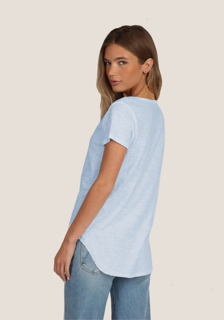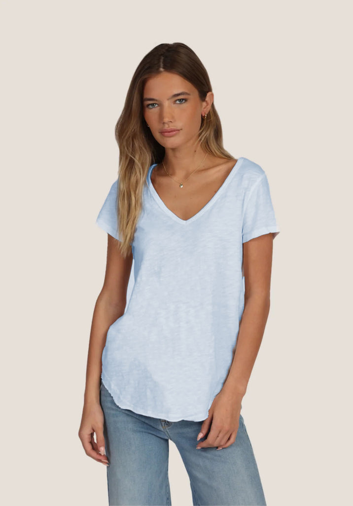 Deep V-Shirt Tail Tee is the perfect go-to item for any occasion. Its ultra-soft, 100% cotton slub-knit natural fabric makes it a best – seller year after year