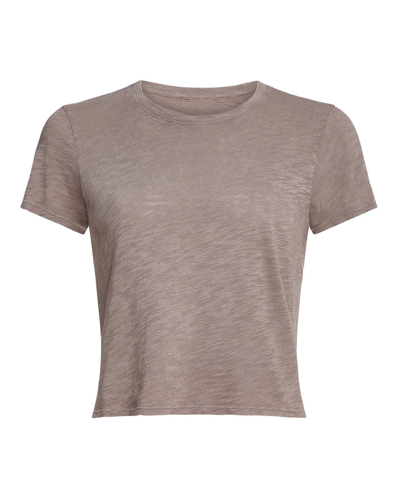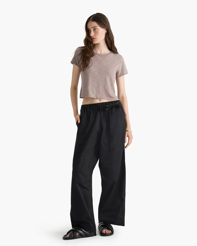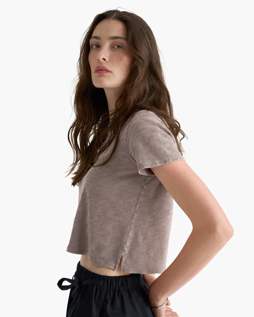 Introducing the latest addition to the ATM collection: our signature school boy tee, now updated with a subtly shrunken and cropped silhouette. This refined fit offers a modern, slightly shorter length that works effortlessly for both polished and casual looks. It blends the timeless relaxed sophistication of ATM with an elevated, easygoing style.