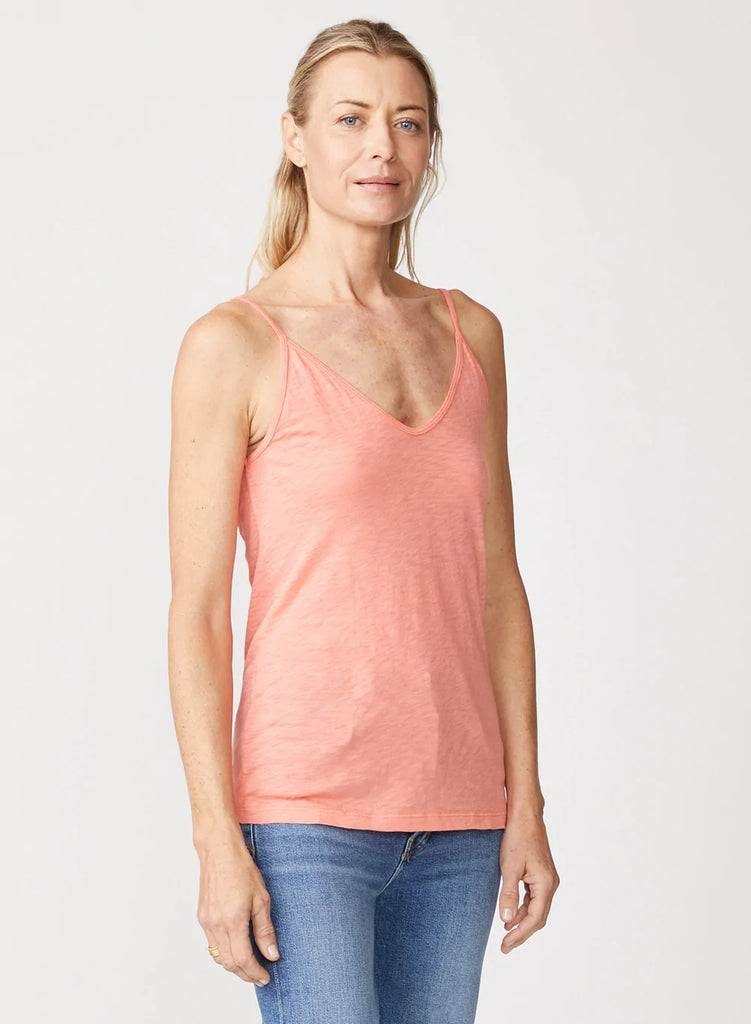 Supima Slub Jersey v-neck cami. An essential layering staple made from super soft Supima cotton. Designed with a double v-neckline in front and back.  Made in the States.