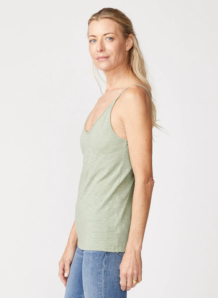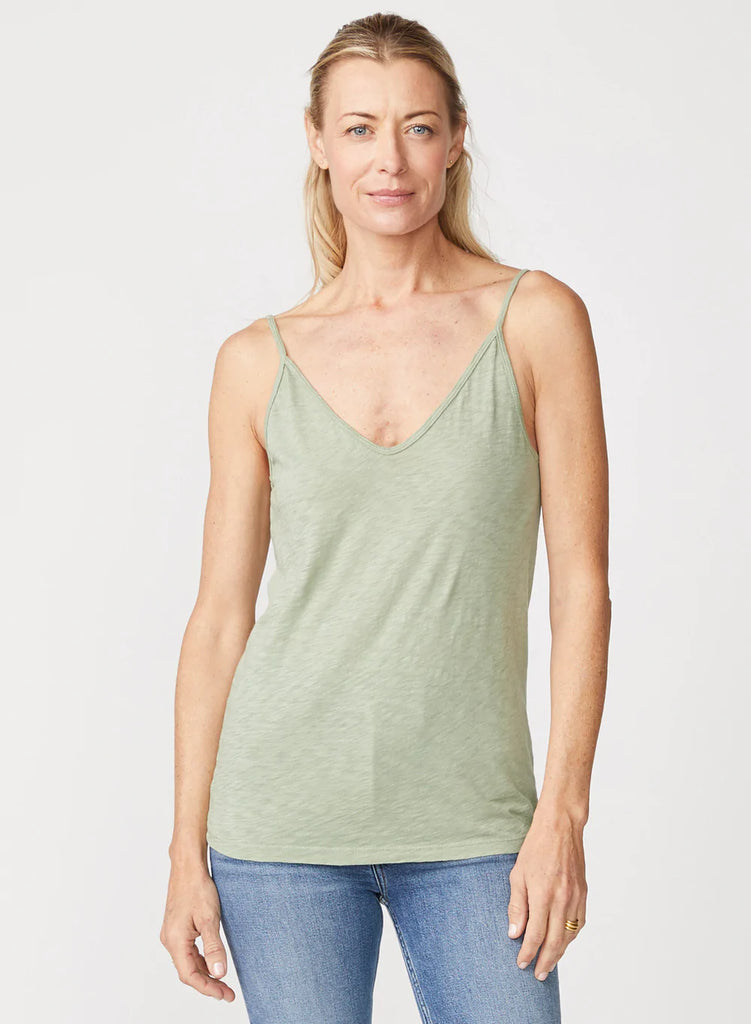 Supima Slub Jersey v-neck cami. An essential layering staple made from super soft Supima cotton. Designed with a double v-neckline in front and back. Made in the States.