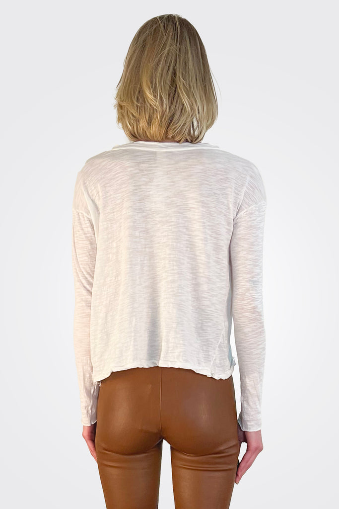 Flattering V-neck falls to just the perfect placement, with a casual-feeling rolled hem. A dependable, classic go-to.
