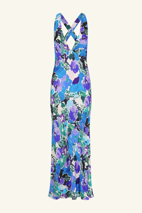 Plunged cross back maxi dress in the floral Curlewis print in a LENZING™ ECOVERO™ with a luxurious matte finish.