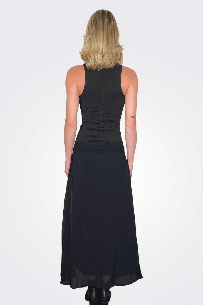 Model measurements: Height: 5'10", 33" bust, 25" waist, 35" hips, wearing a size 2