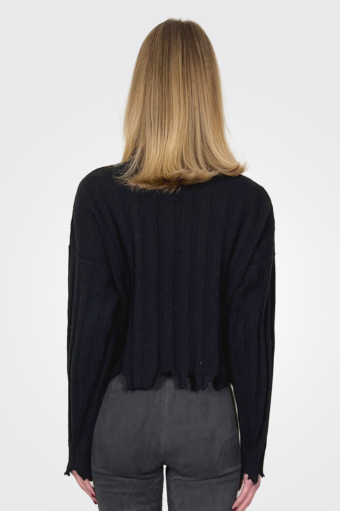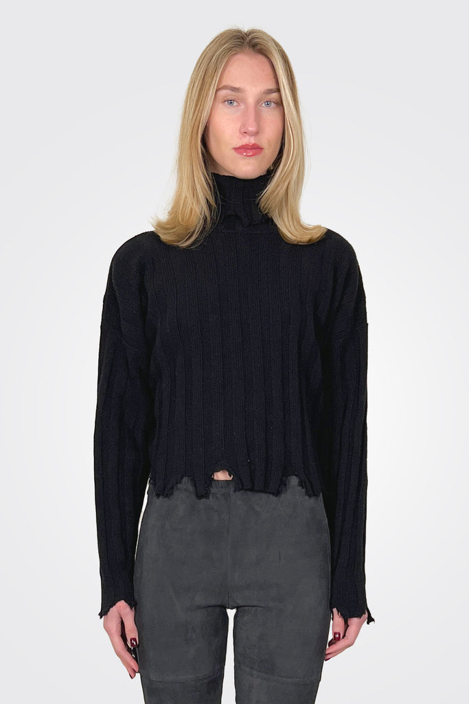 Cut Raw Edge Turtleneck - Black