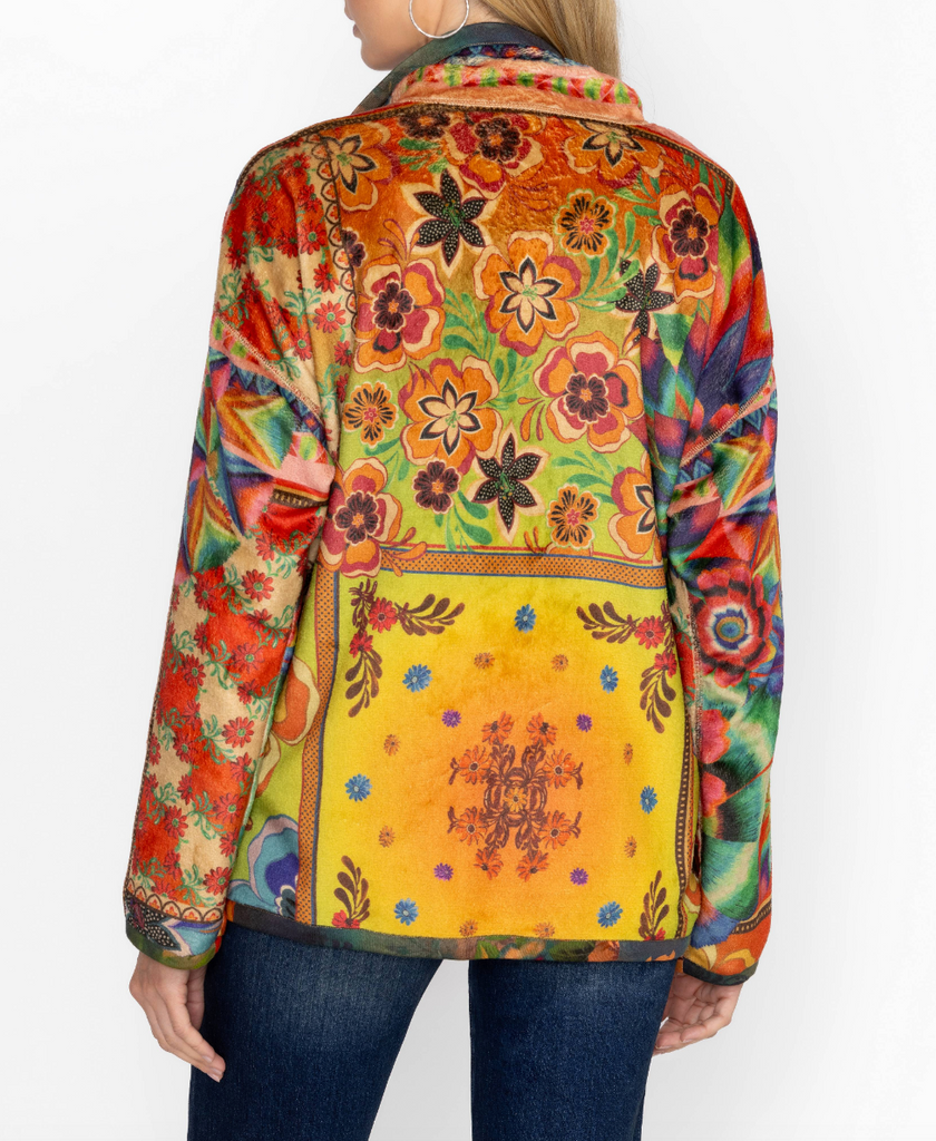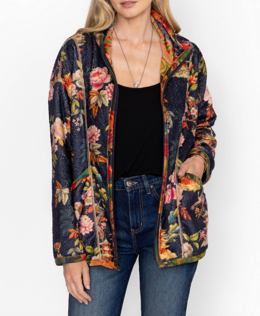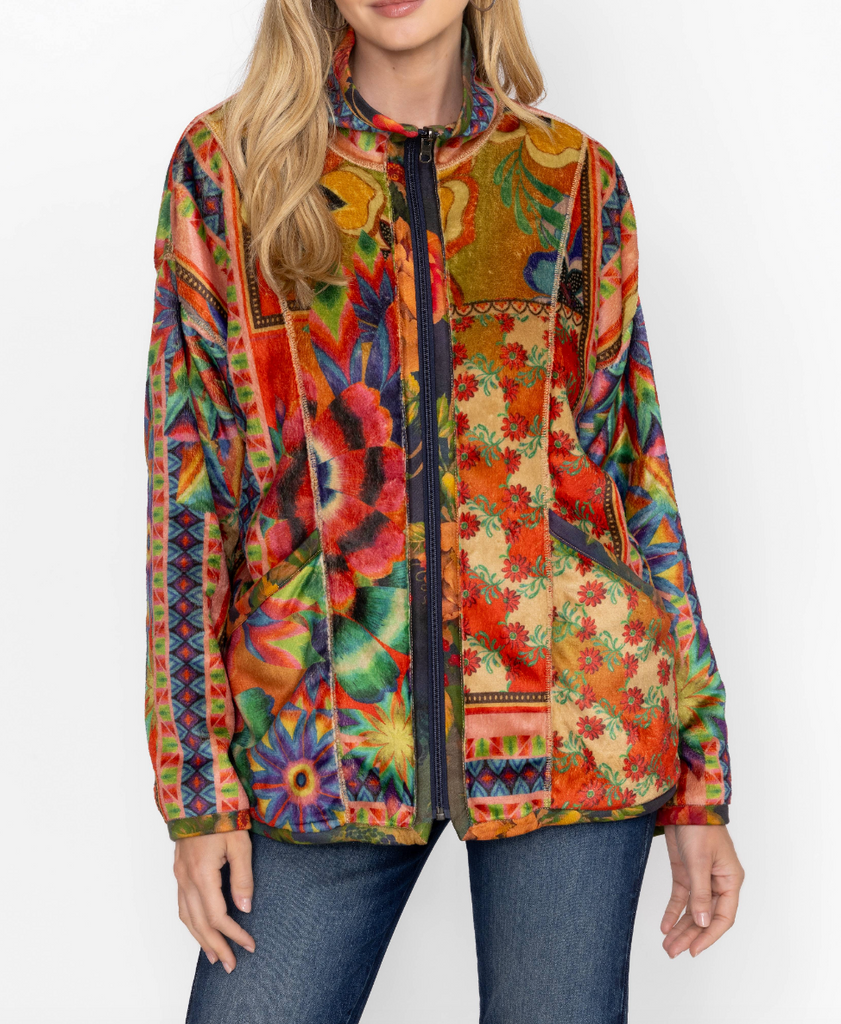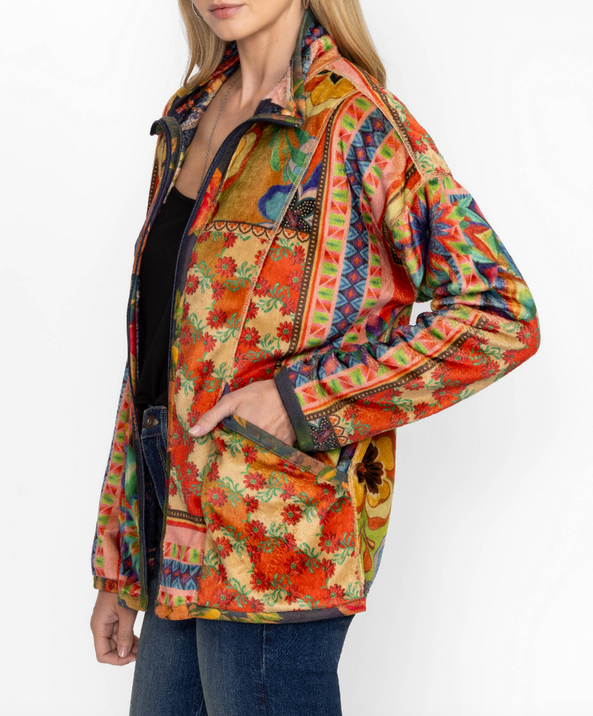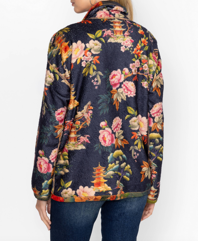 Bold and brilliant, the Joan Zip Sherpa Jacket is crafted from a lightweight easily packable material. Featuring a zip front with a high, fitted neck, this fully reversible jacket is embellished with a vibrant colorful pattern and is finished with functional pockets. Layer over a classic tee and relaxed-fit jeans for an eye-catching weekend look.