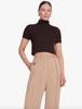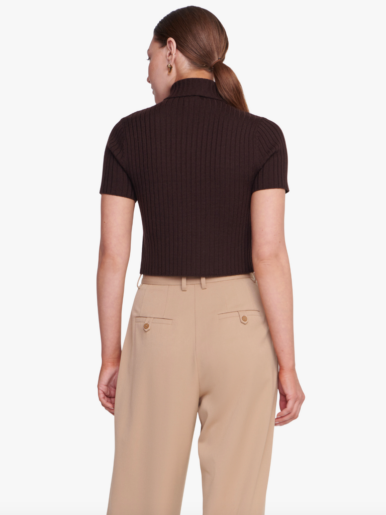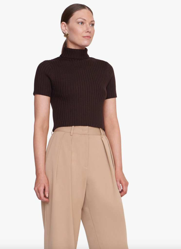 An easy layering piece, the Lilou Top is a ribbed knit top with a slightly cropped hem and mock neck collar.