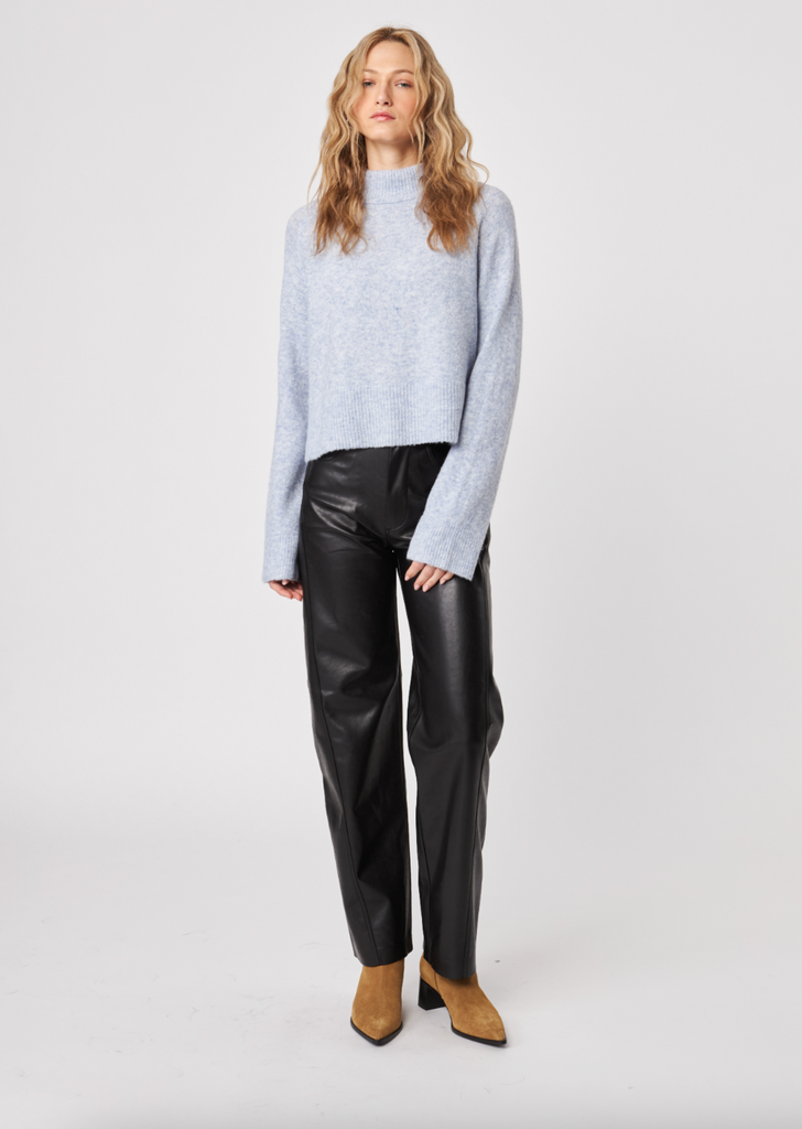 Indulge in cozy luxury with the John + Jenn Oliver Sweater. This mock neck sweater features long bell sleeves and a speckled threading design, adding a touch of playful sophistication to any outfit. Stay comfortably stylish this season.